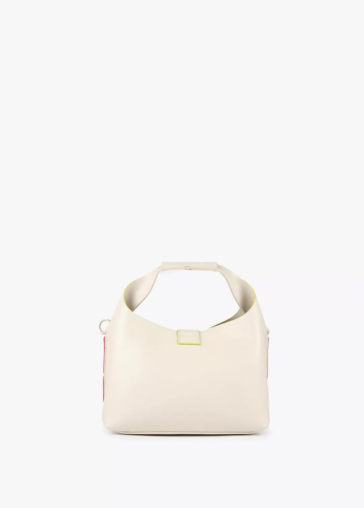 Bandolera color crud con acabados a contraste. Cierre con botón imantado y con cremallera en parte interior.