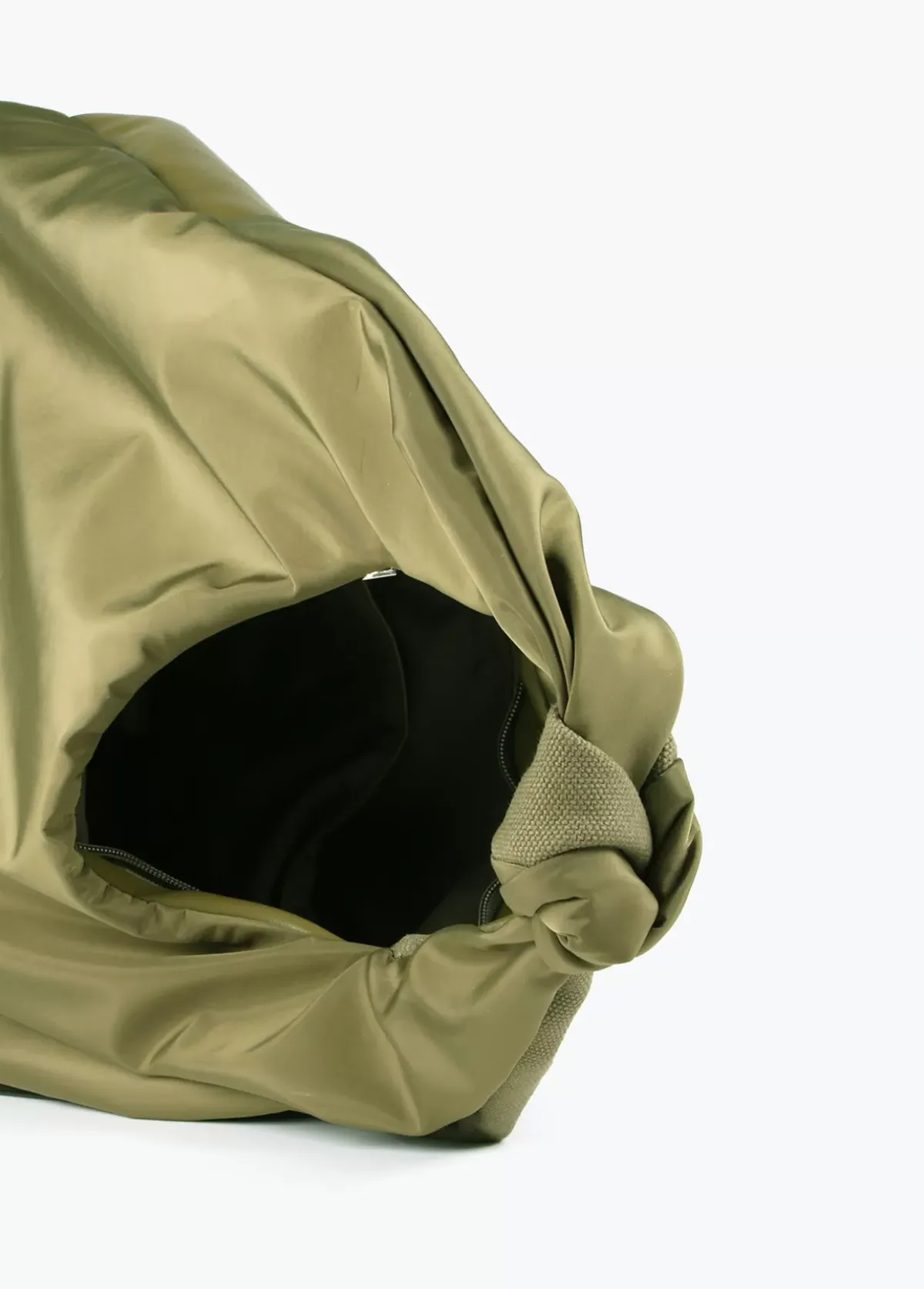 Bolso shopper de hombro de tres materiales combinados. Nudo en asa y logo lacado en zona frontal. Cierre principal y bolsillo lateral con cremallera.