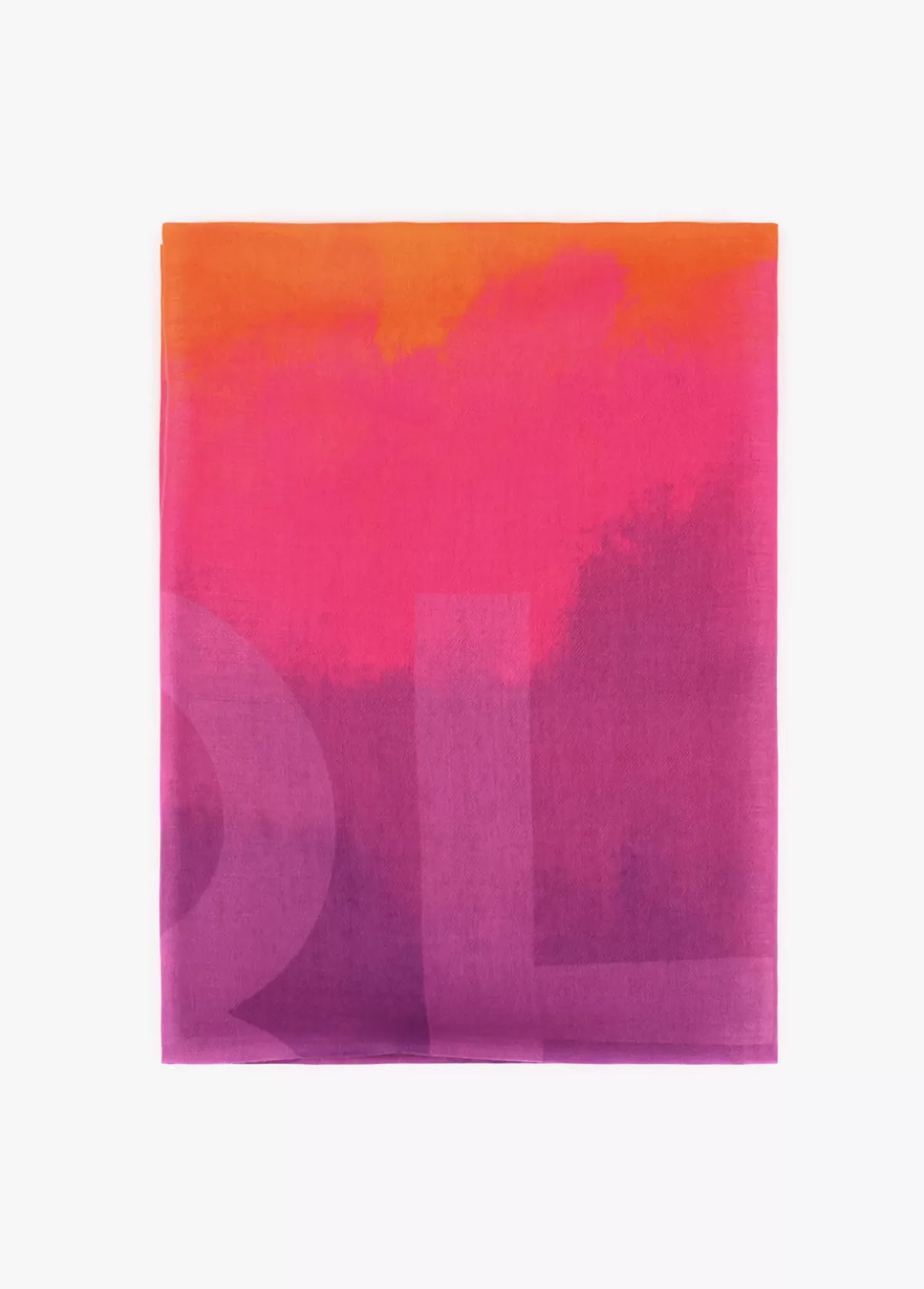 Fular en colores fucsia y naranja combinados y maxi logo en degradé.
