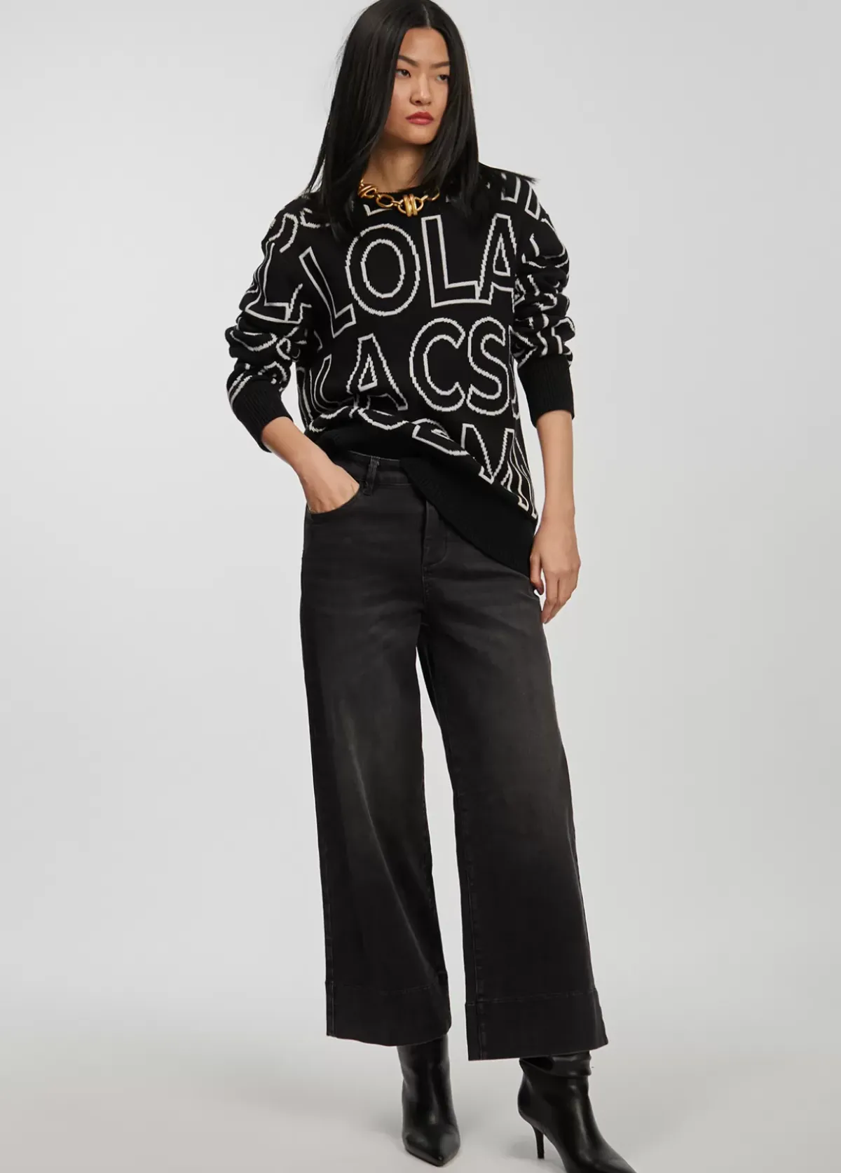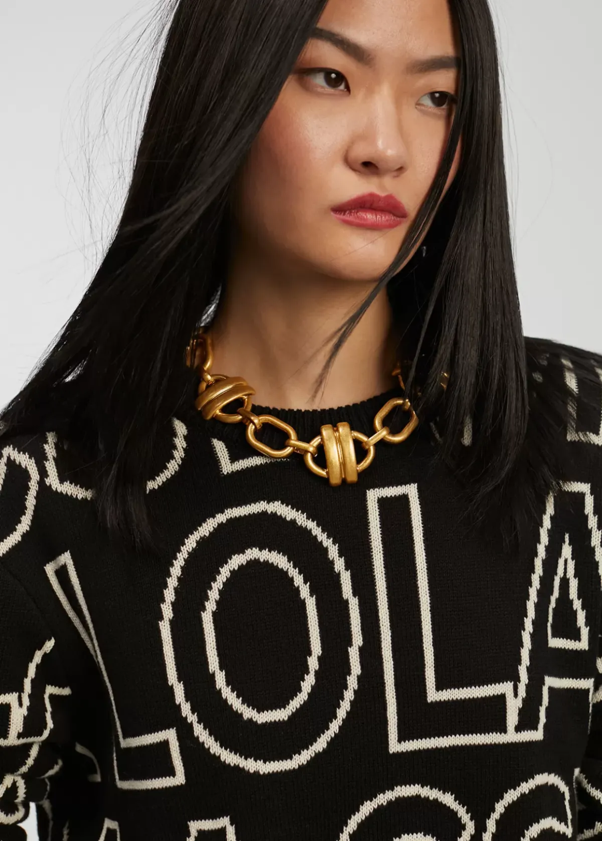 Jersey oversize de punto. Cuello caja. Estampado en maxi letras a contraste.