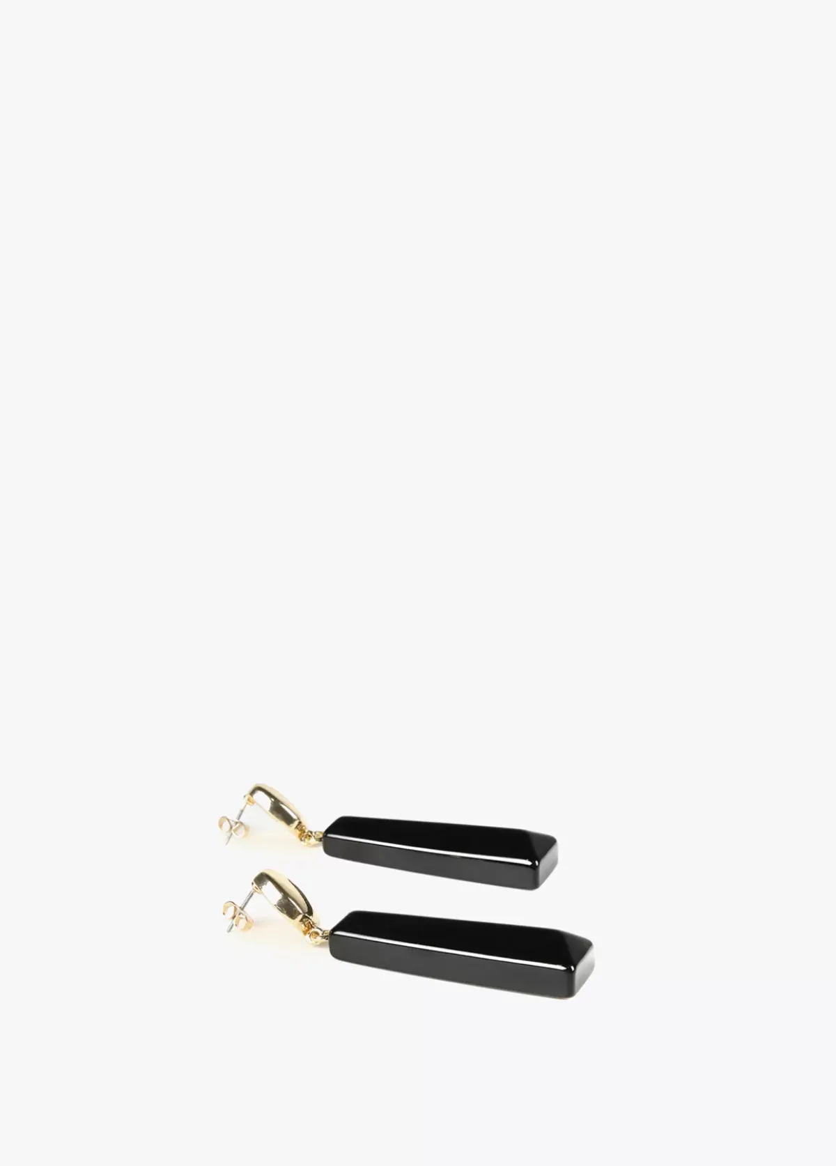 Pendientes dos piezas tipo tecla piano en color negro y detalles dorados.