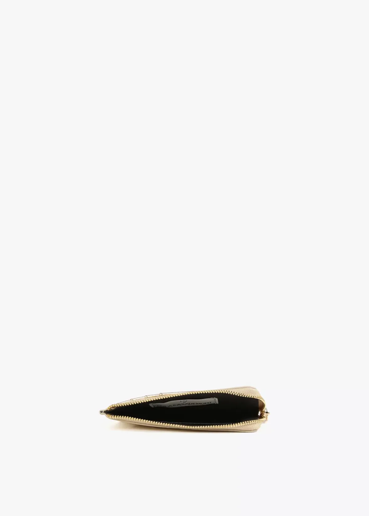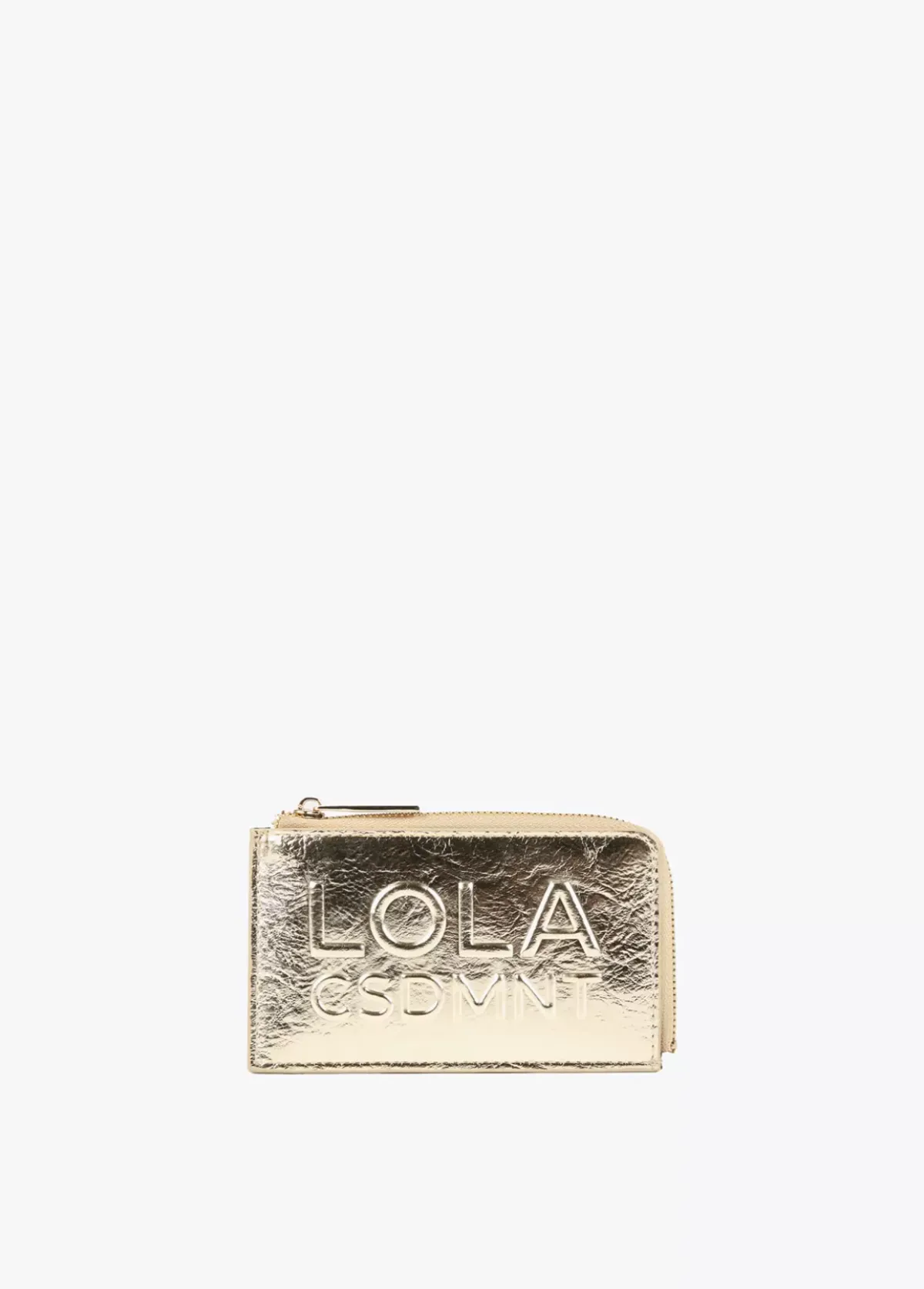 Tarjetero metalizado. Cierre con cremallera para monedas y logo grabado en parte frontal.