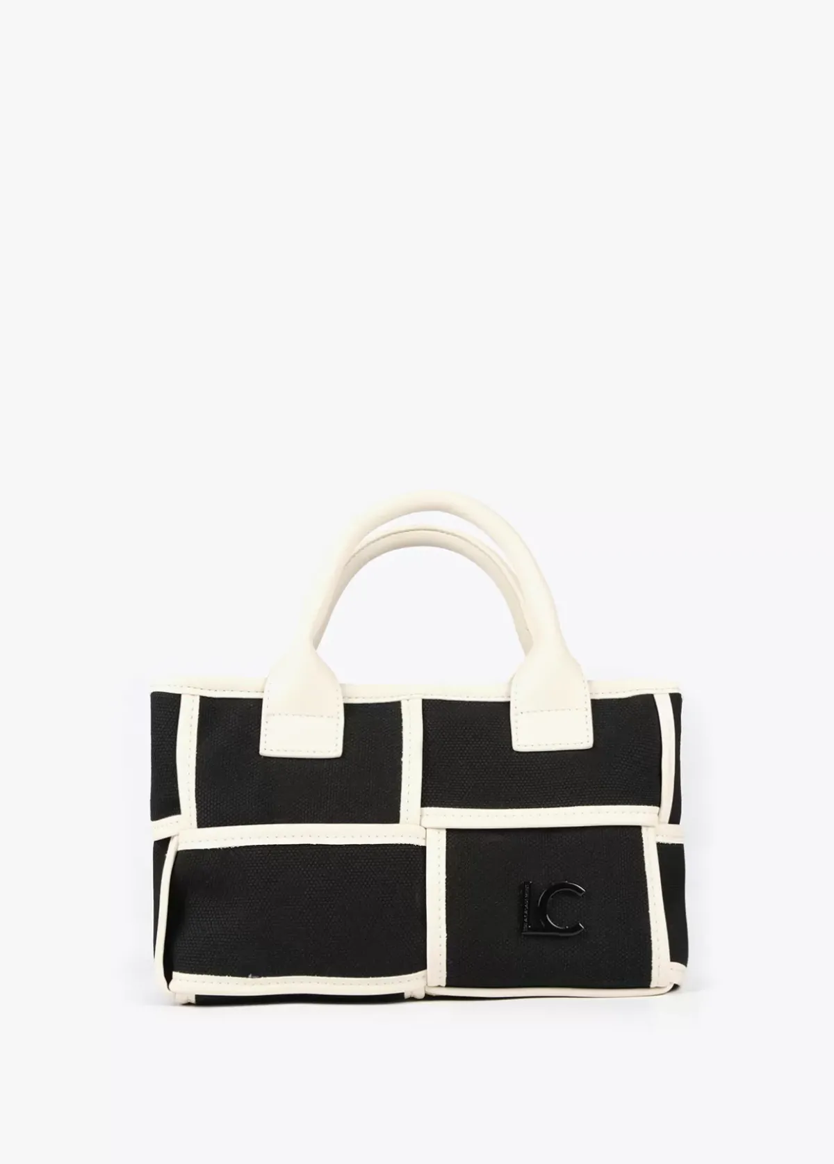 Bolso bandolera con detalles en efecto piel a contraste. Asas de mano y asa bandolera logotipada, ajustable y extraible. Logo lacado y cierre de cremallera.