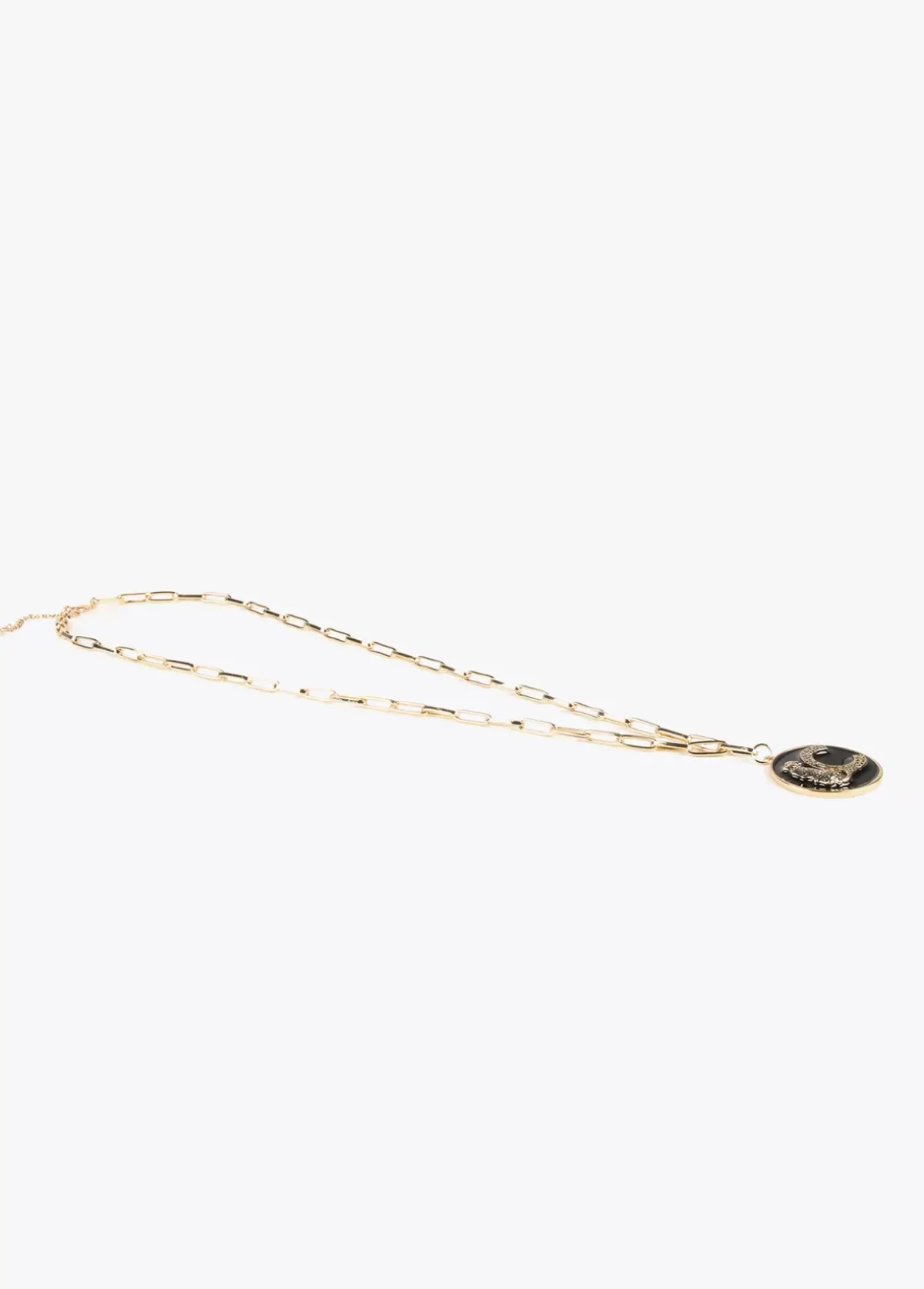 Collar dorado con eslabones y medalla colgante con logo animal. Cierre ajustable.