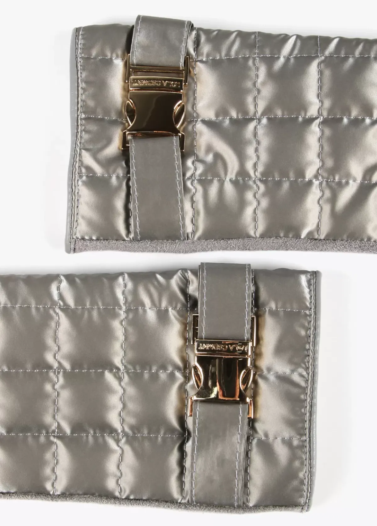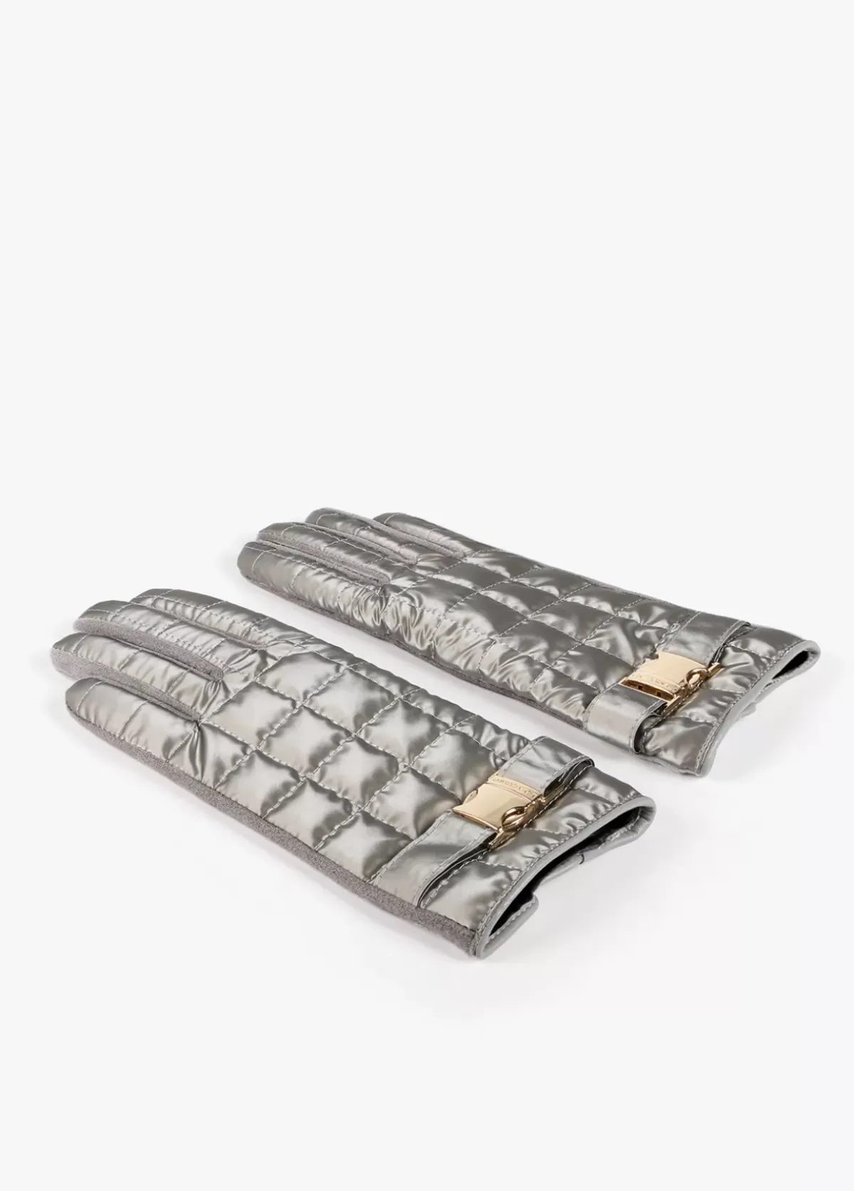 Guantes acolchados de nylon brillante y hebilla dorada y logotipada tipo sport en zona puños.