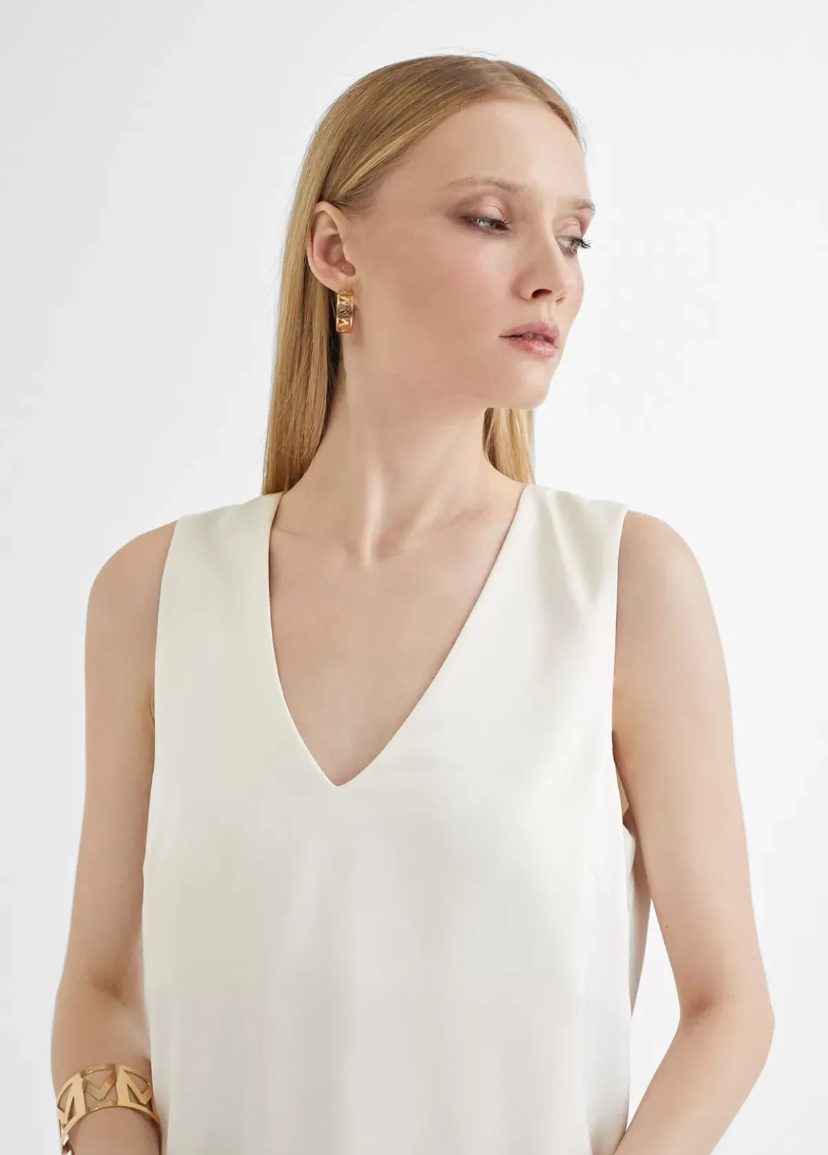 Top largo de tirantes anchos. Escote pico y aberturas laterales.