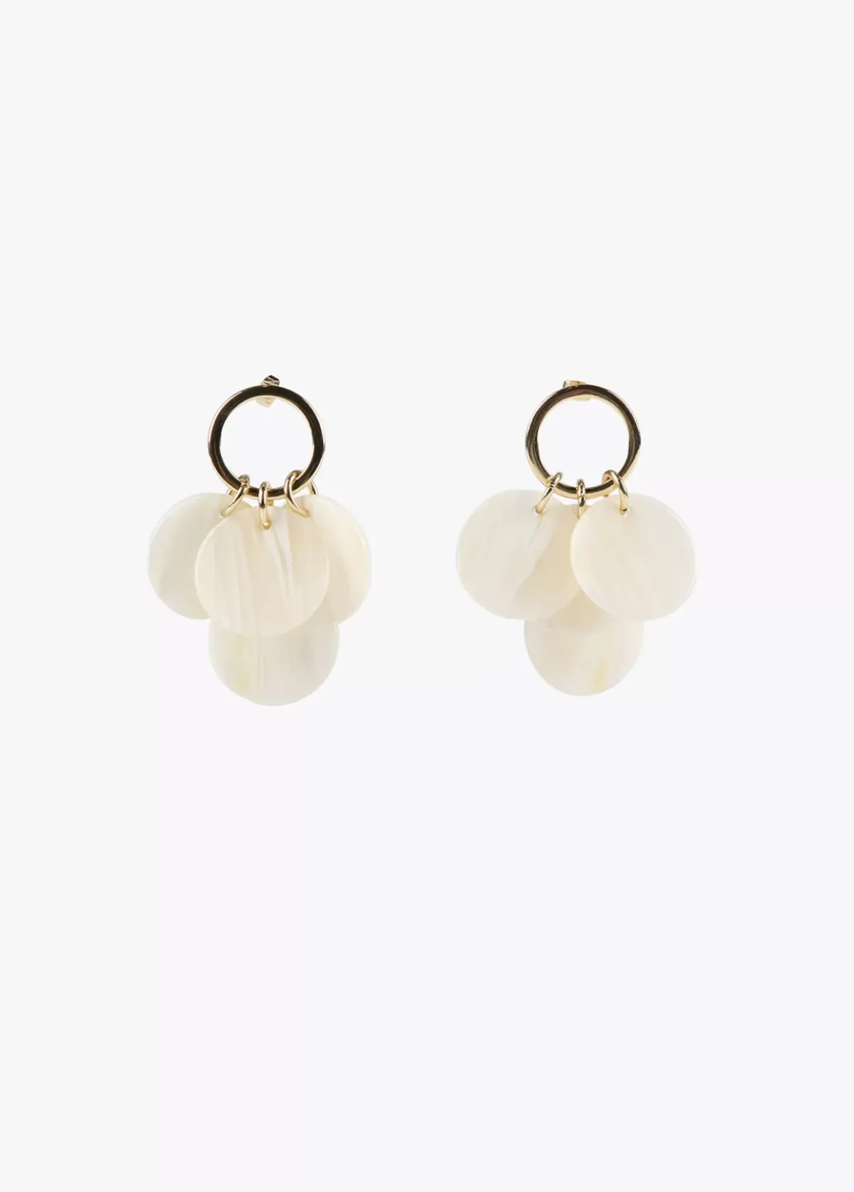 Pendientes de aro dorados con multi piezas blancas y nacaradas.