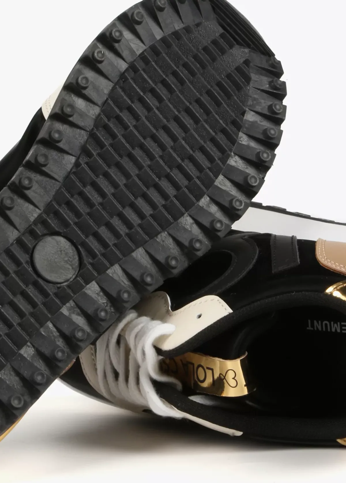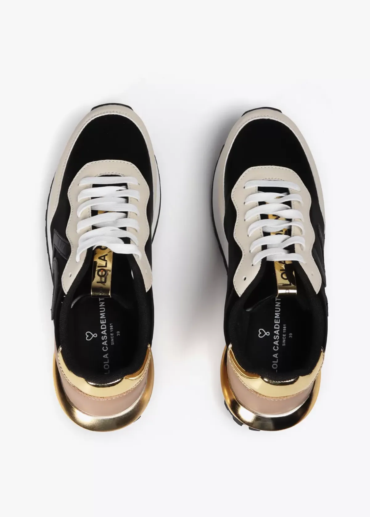 Zapatillas deportivas tipo sneakers con detalles dorados combinados. Logo en lengüeta y plantilla y maxi letras logo en el lateral. Cordones en color negro y en color blanco.