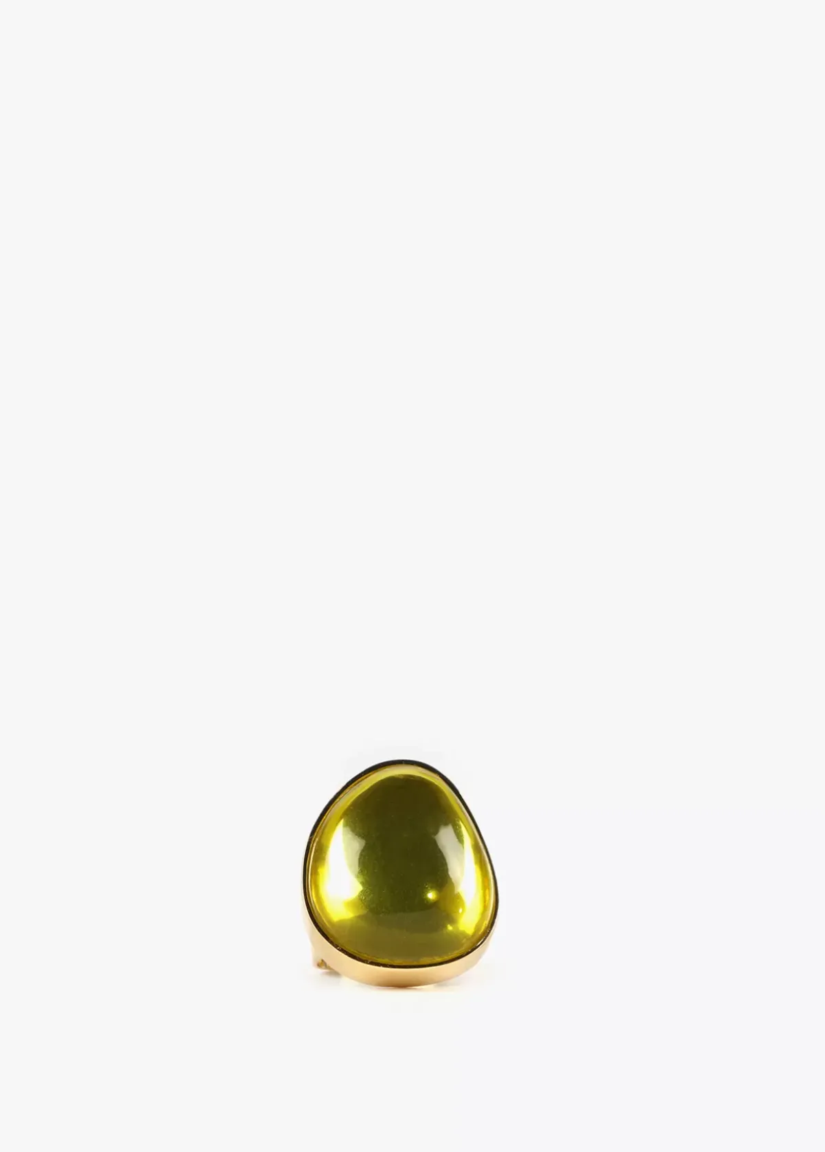 Anillo dorado con maxi piedra de cristal engarzada. Ajustable.