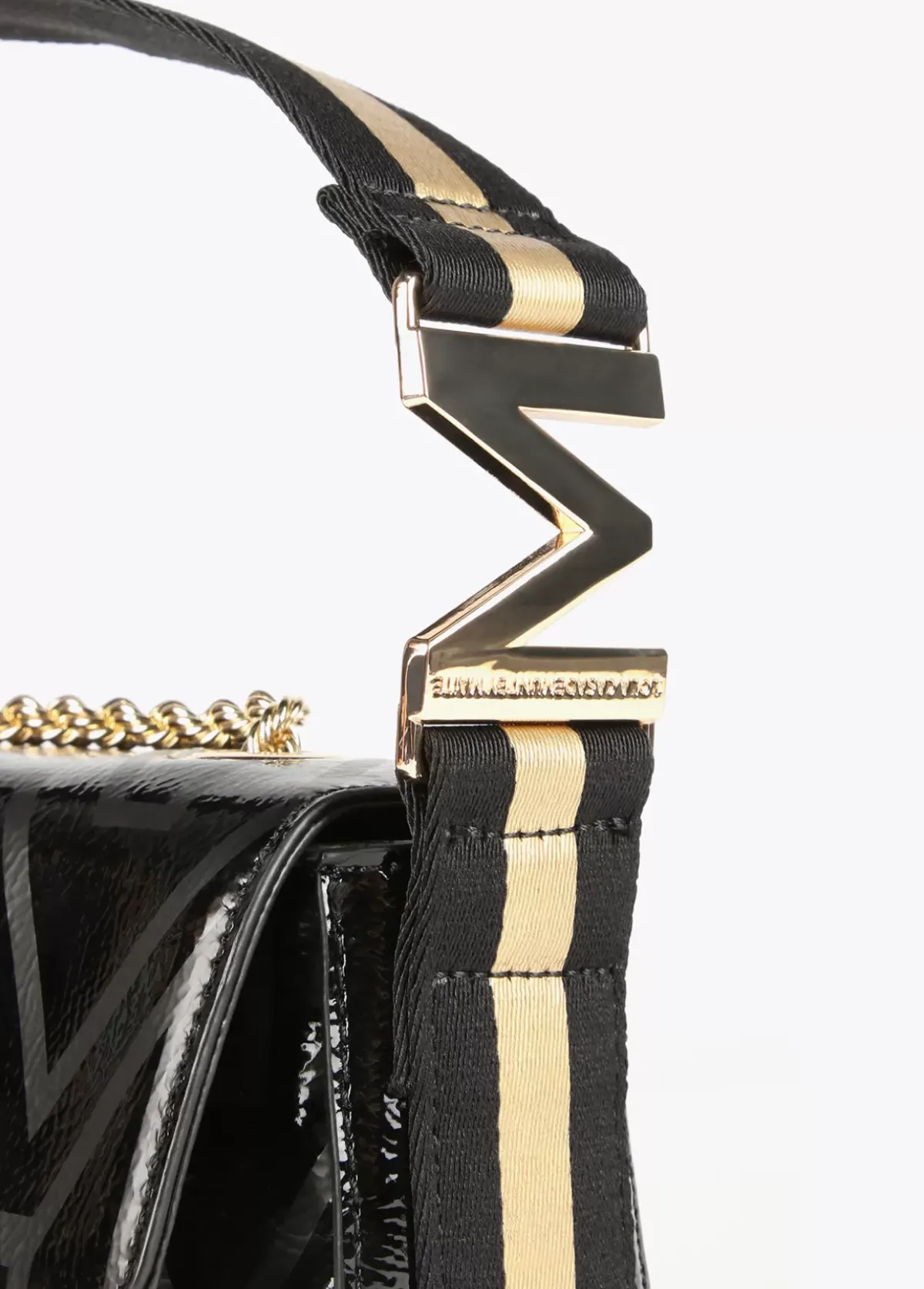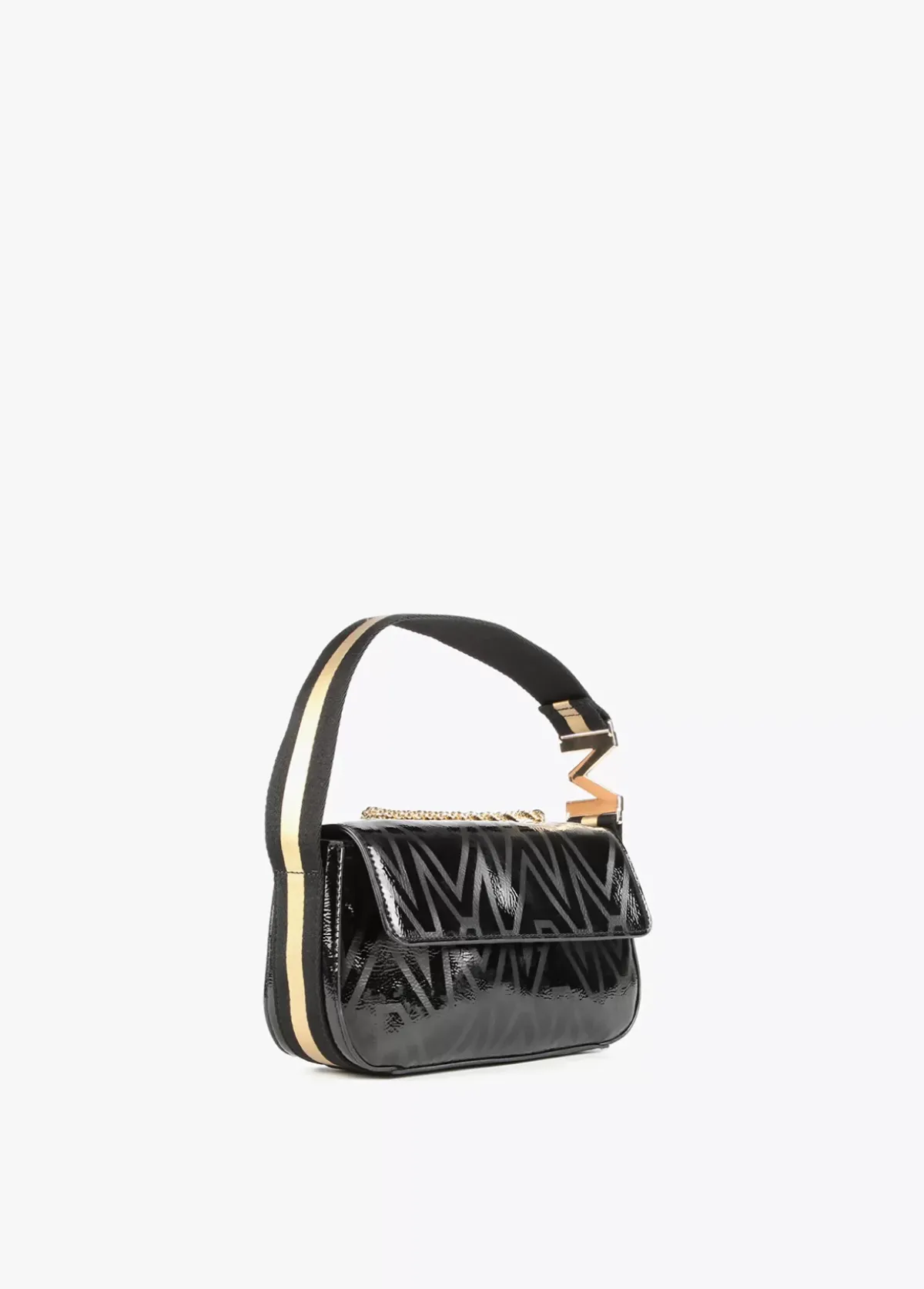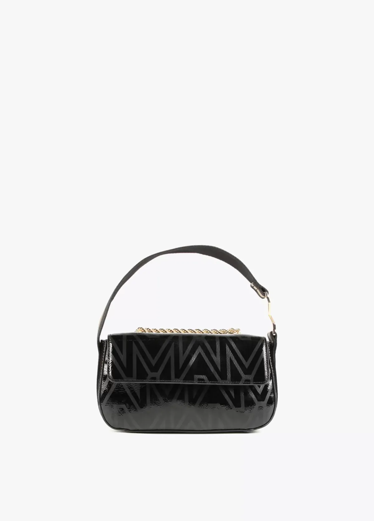 Bolso bandolera con monograma estampado. Asa de mano y asa bandolera. Cierre con botón imantado, detalle letra logo dorada en asa de mano.