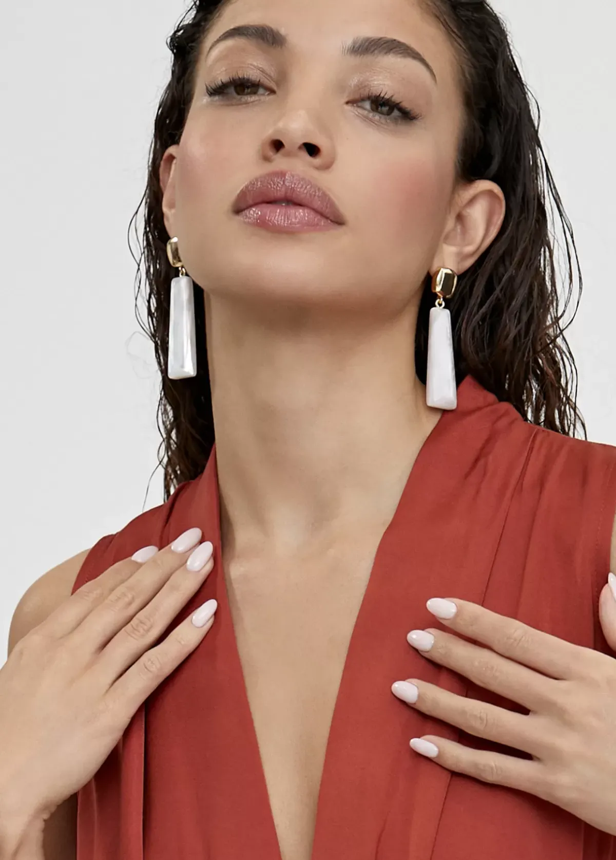 Vestido fluido monocolor. Escote pico y manga sisa. Cinturon del mismo tejido y color. Falda cruzada.