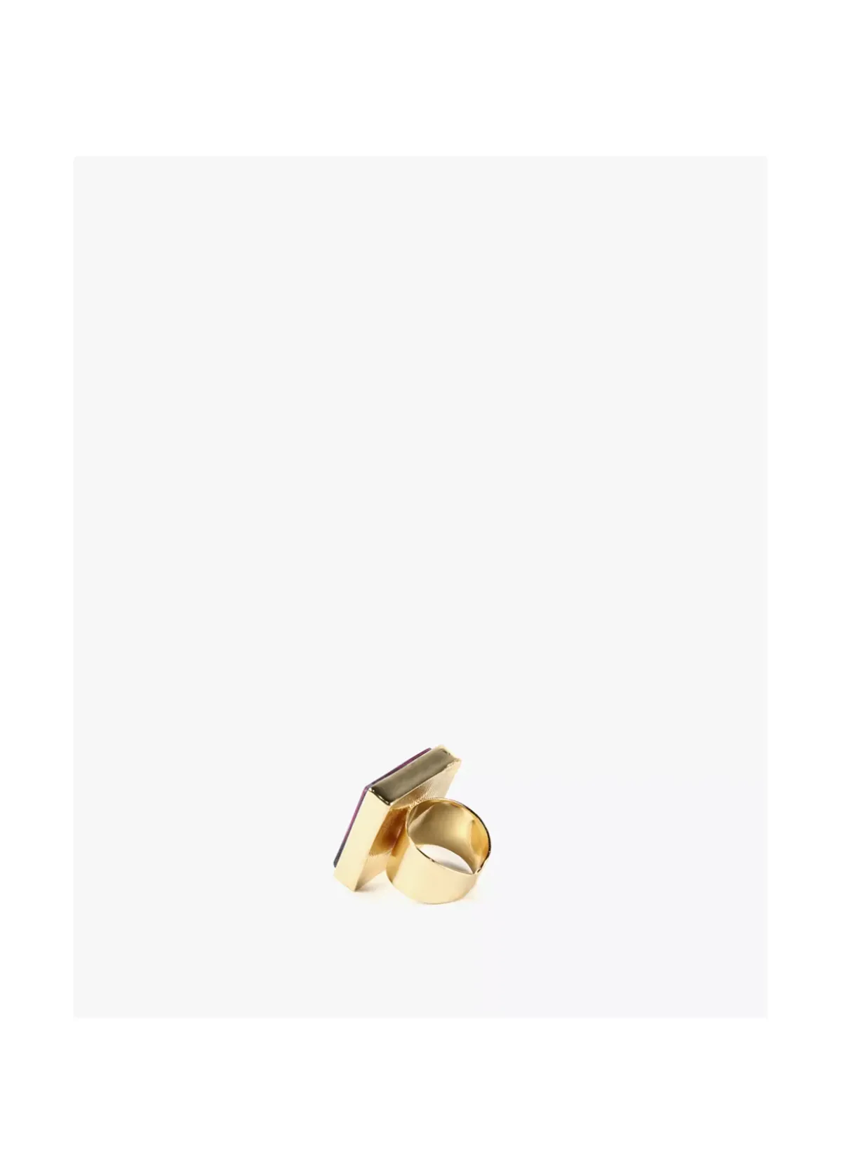 Anillo de cristal con estampado animal y engarce dorado. Ajustable en parte trasera.