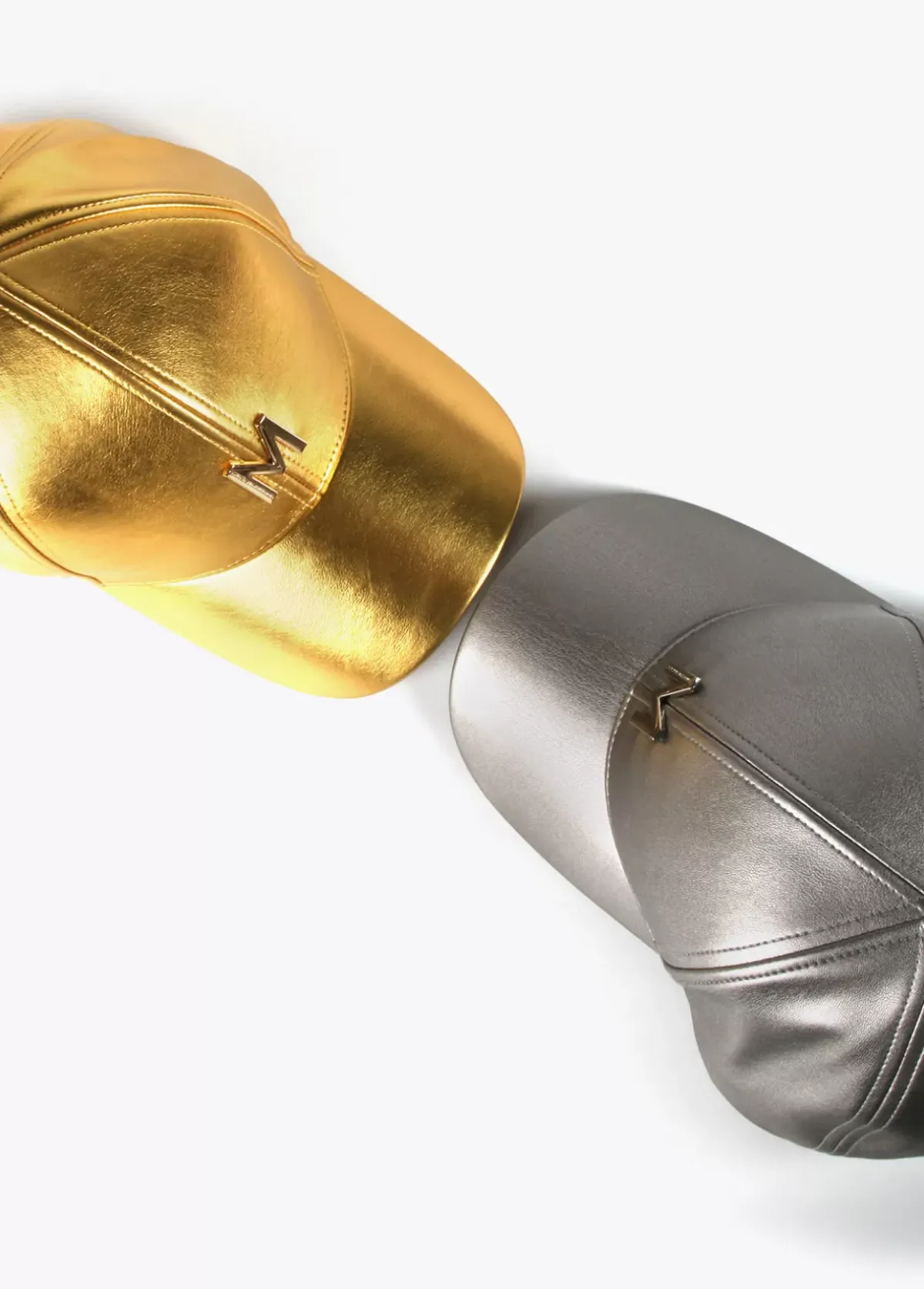 Gorra color gris metalizado con interior estampado animal. Detalle letra logo plateada en parte frontal. Ajustable.