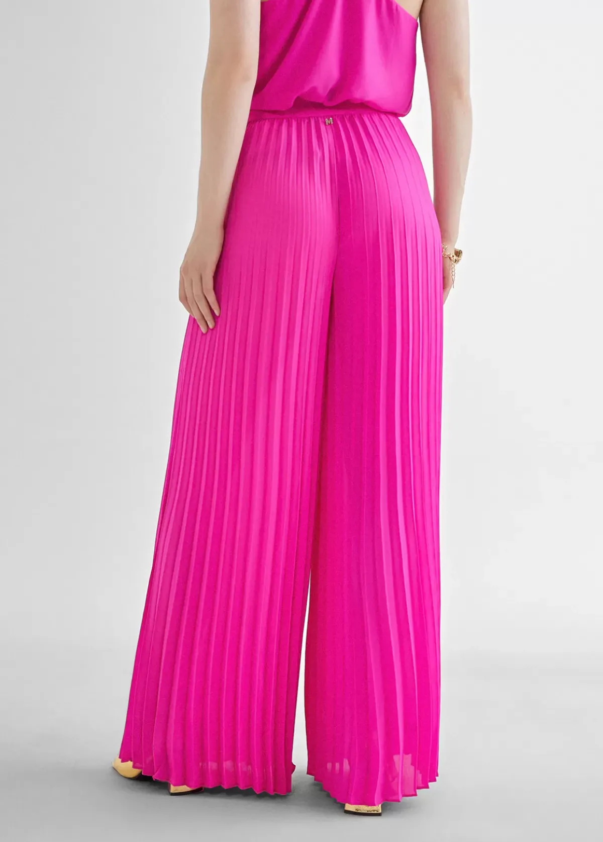 Pantalón monocolor largo y plisado. Cremallera lateral oculta.