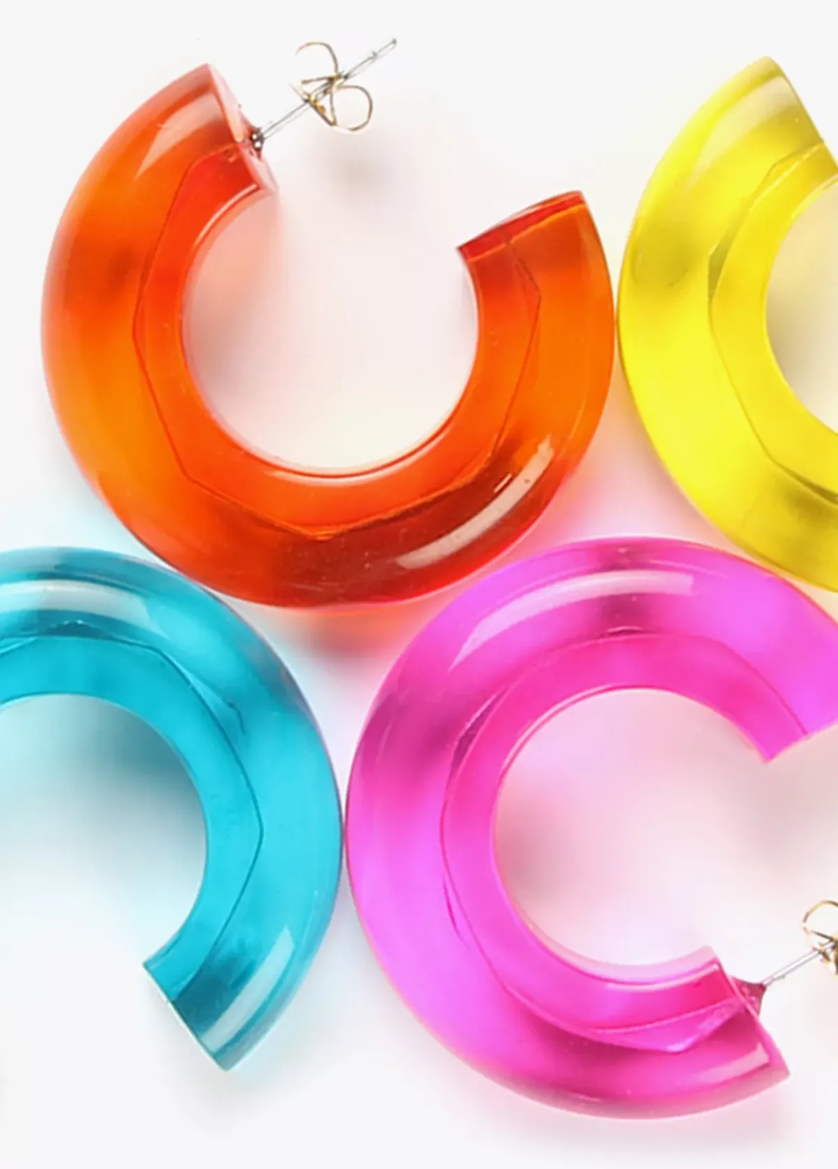 Pendientes acrílicos de aro grueso en diferentes colores.