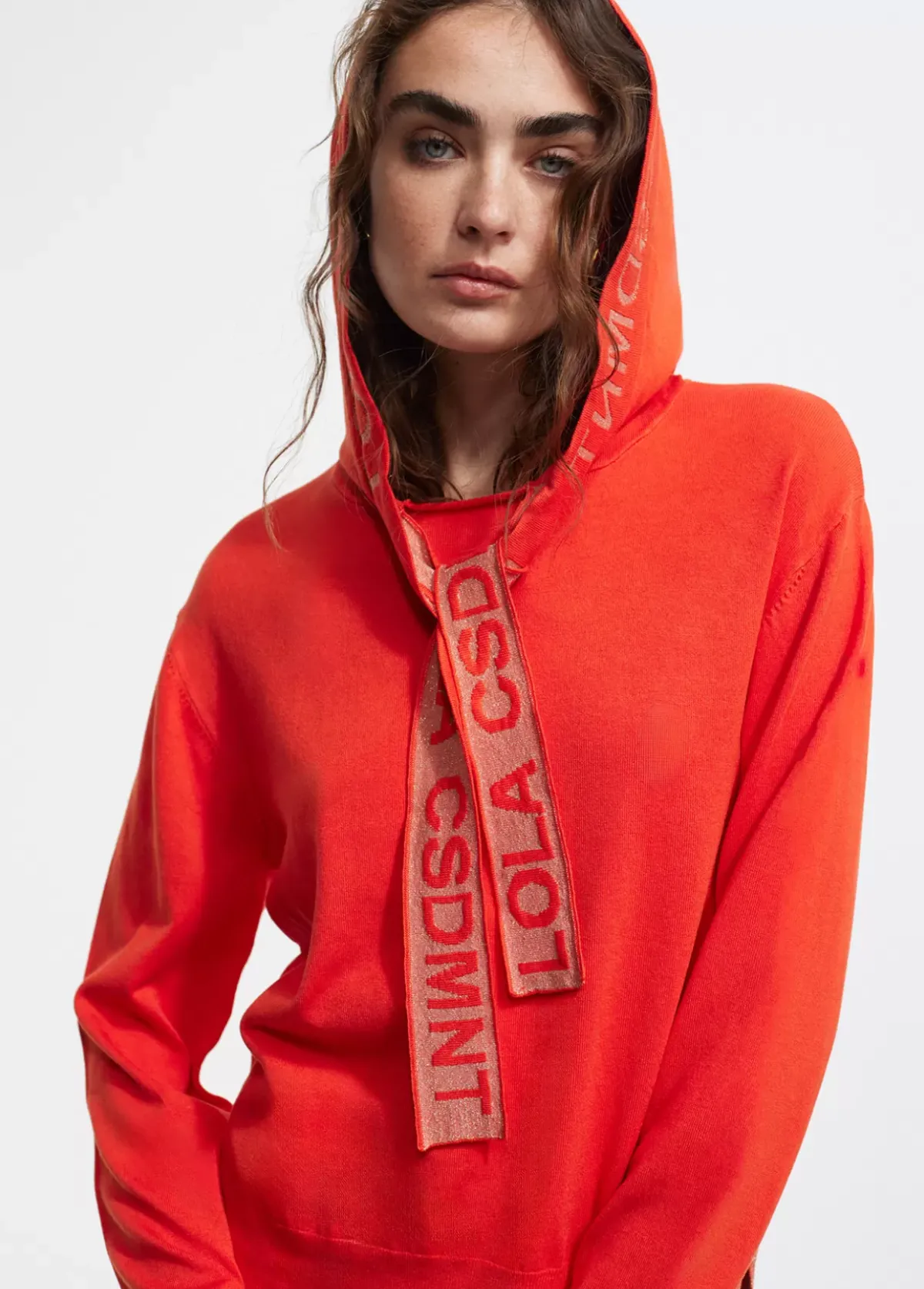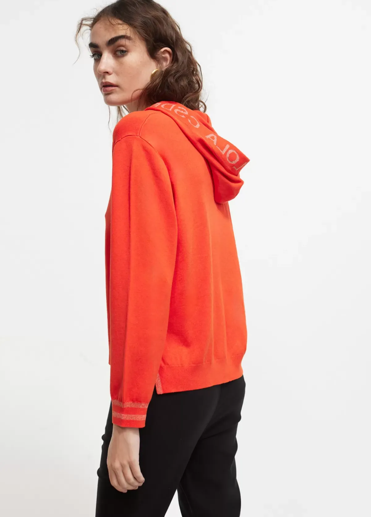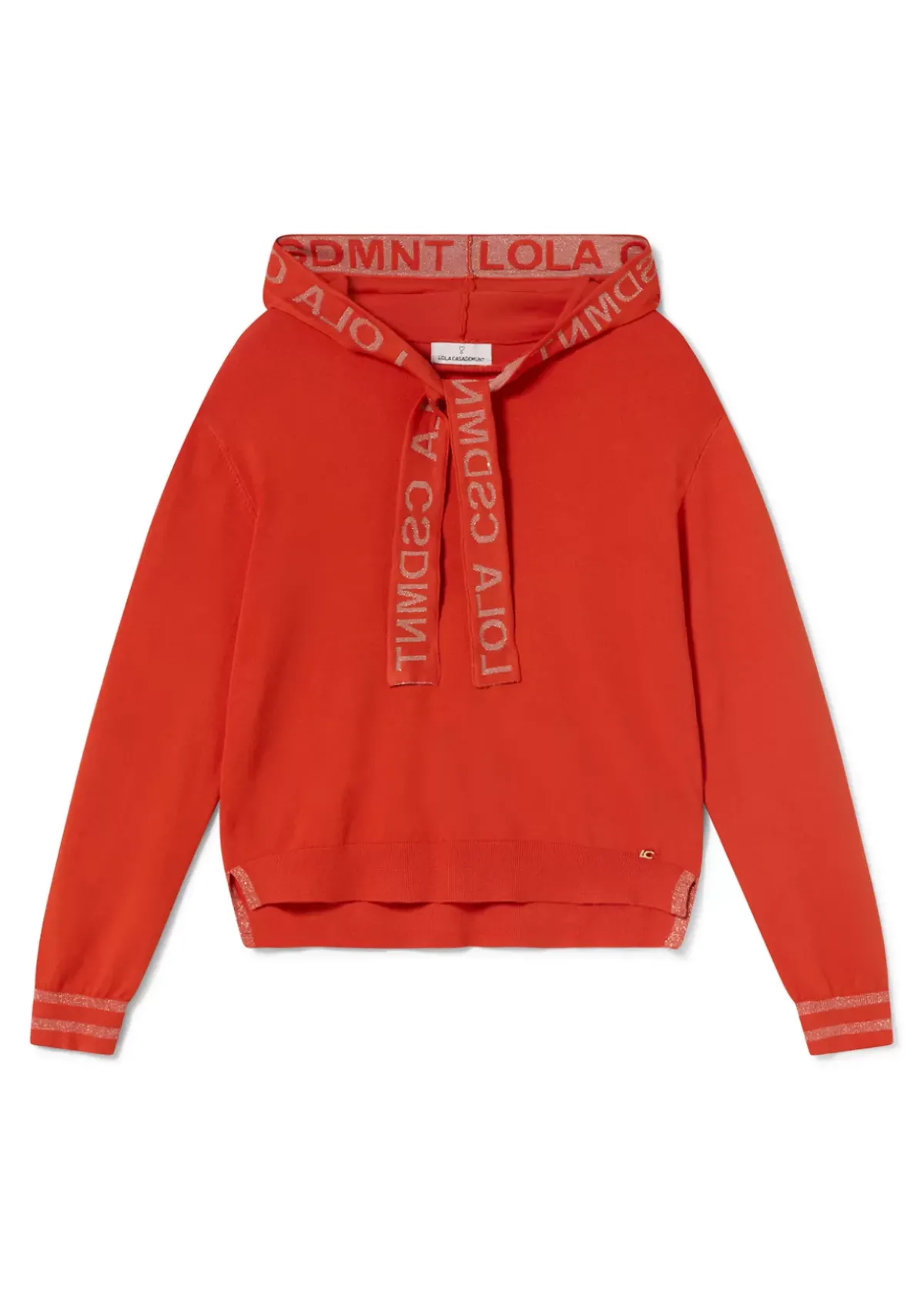 Jersey de punto con capucha. Detalle en lazo y capucha de logo en lúrex bicolor.
