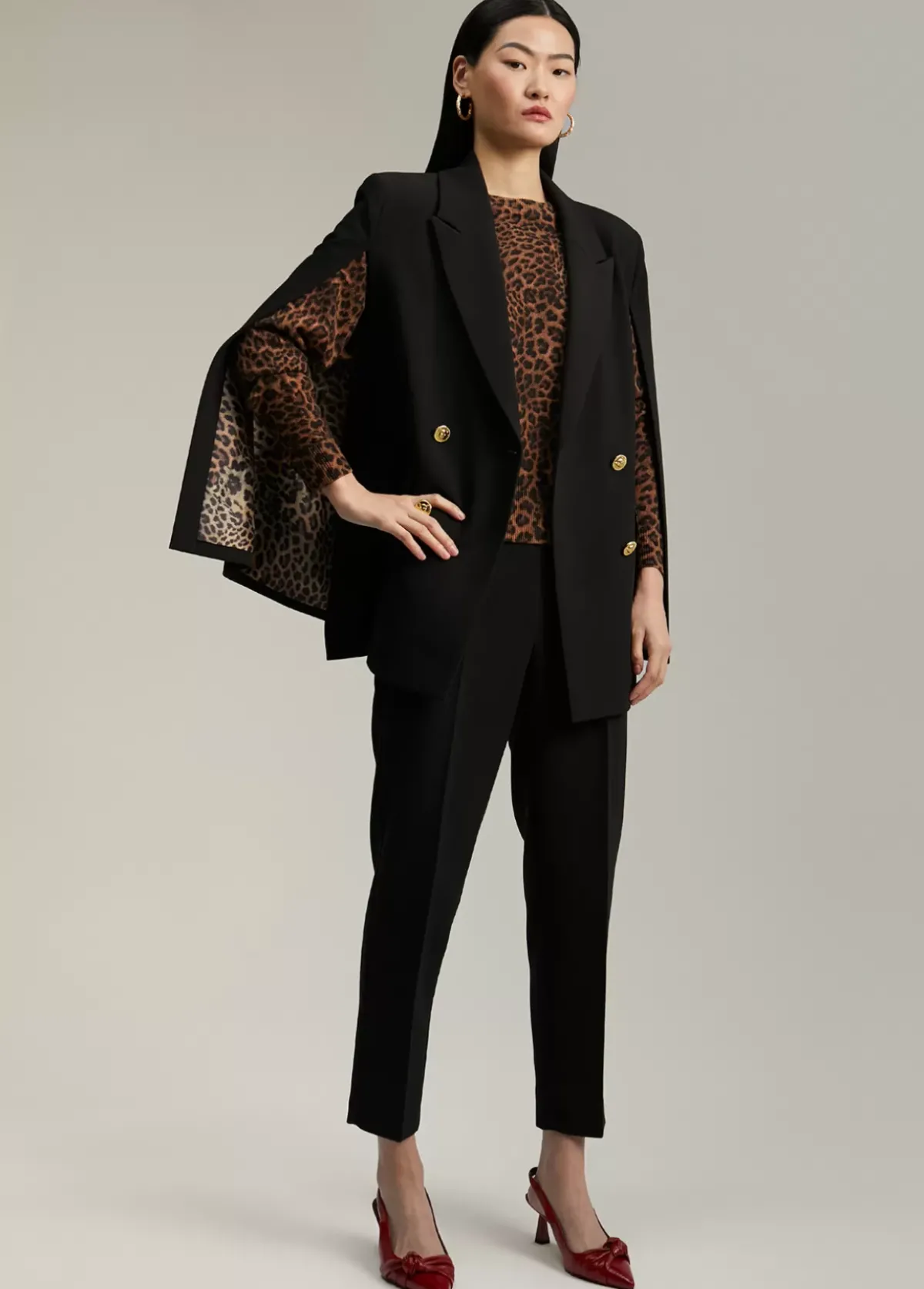 Pantalón de largo tobillero. Bolsillos laterales con detalle de botones metálicos en dorado. Goma trasera y falso bolsillo con vivo.