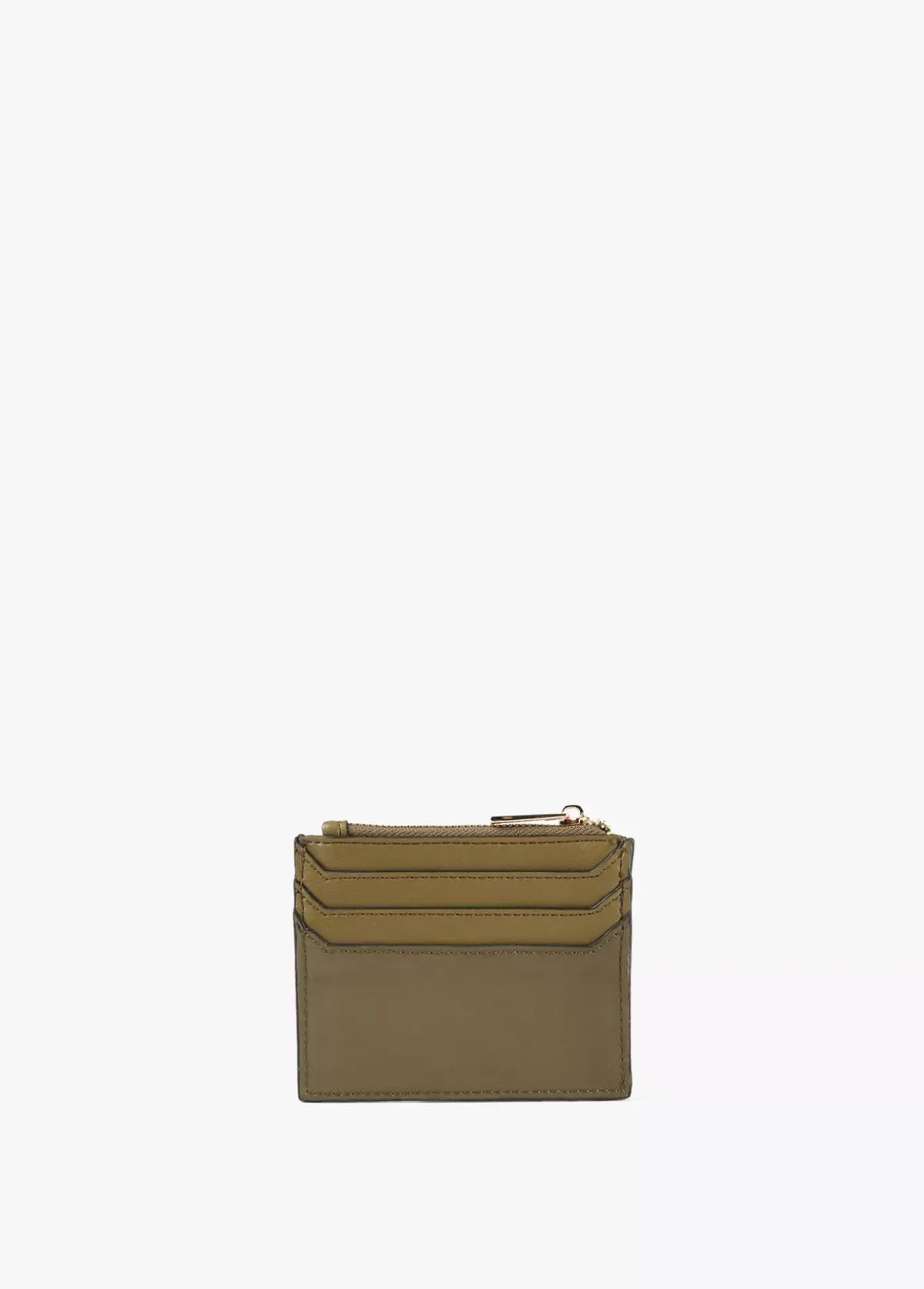 Tarjetero en efecto piel y logo lacado en parte frontal. Bolsillo con cierre de cremallera.
