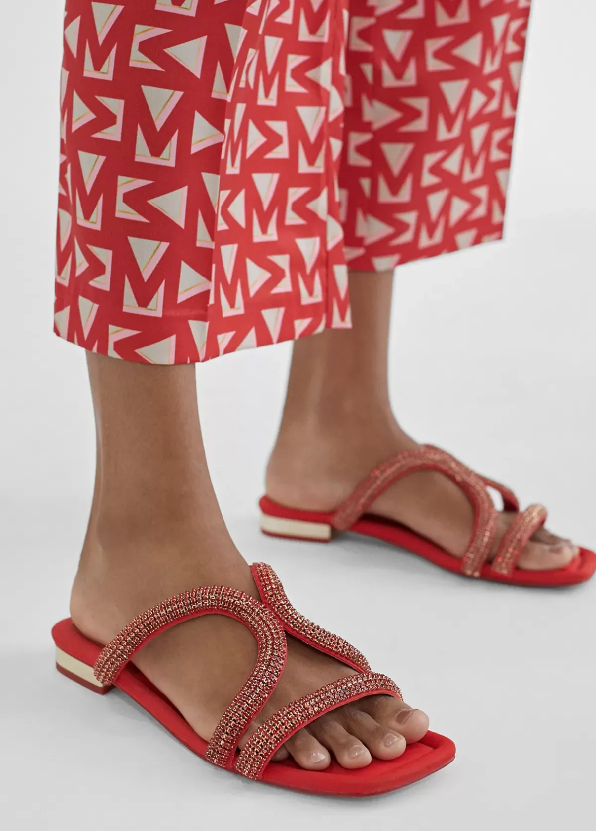 Sandalia plana con pedreria Calzado