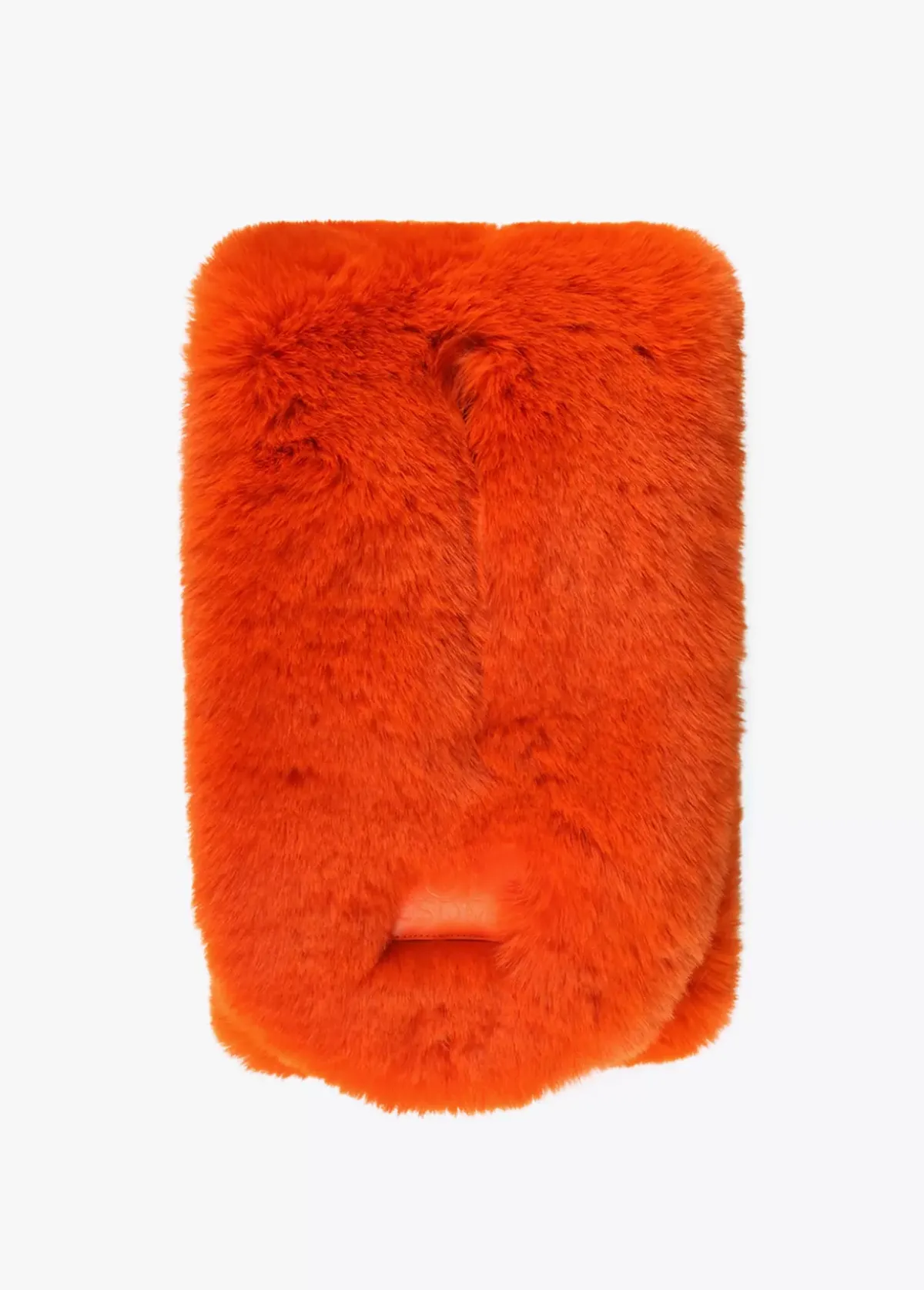 Cuello efecto pelo de color con logo grabado sobre efecto piel.