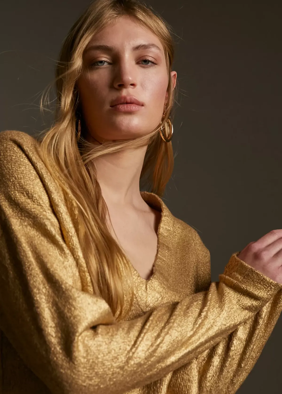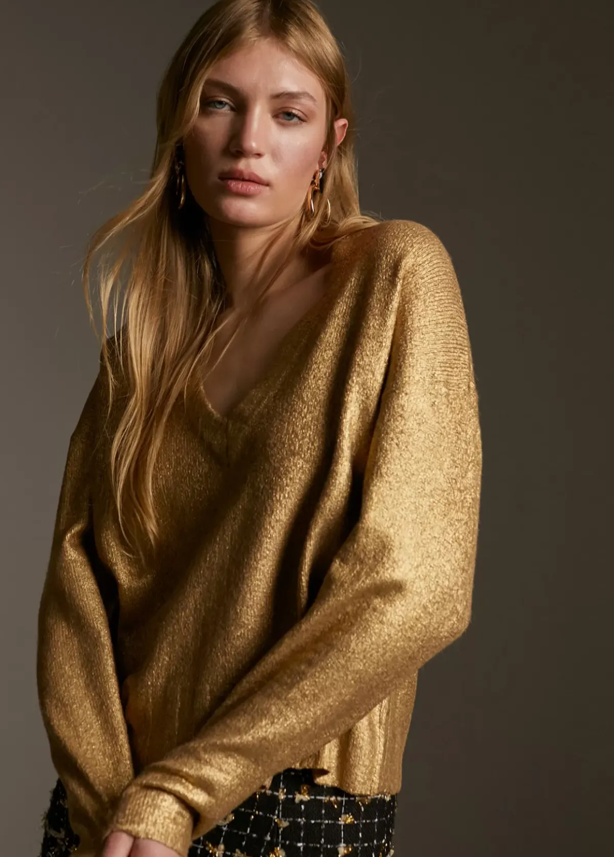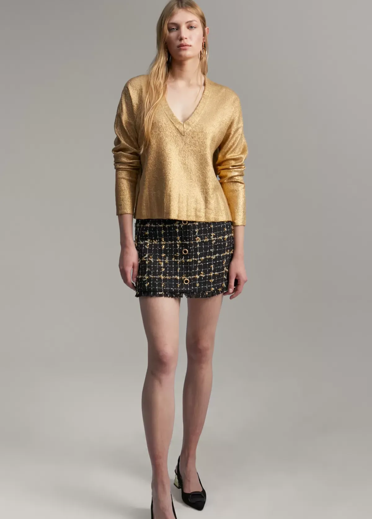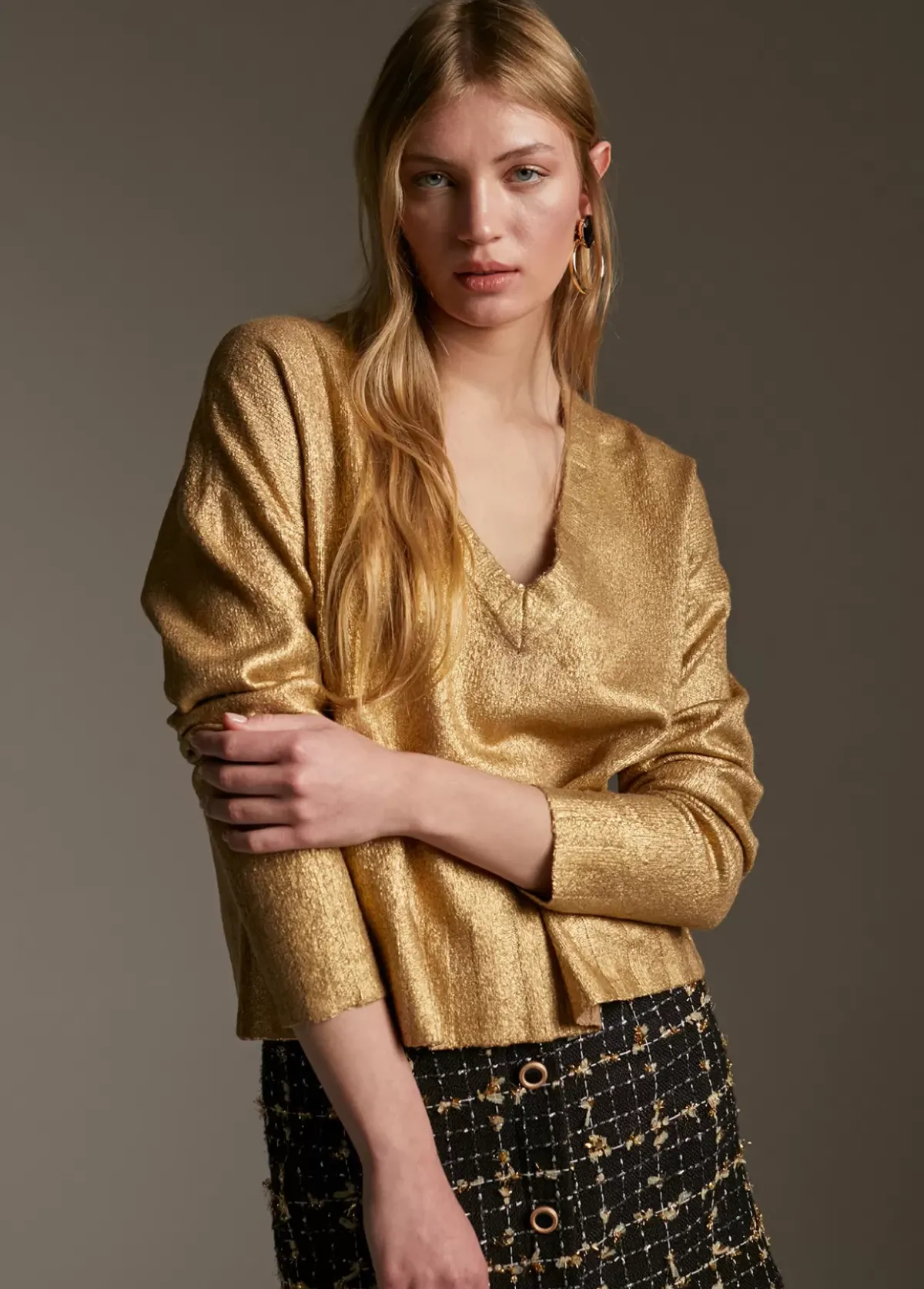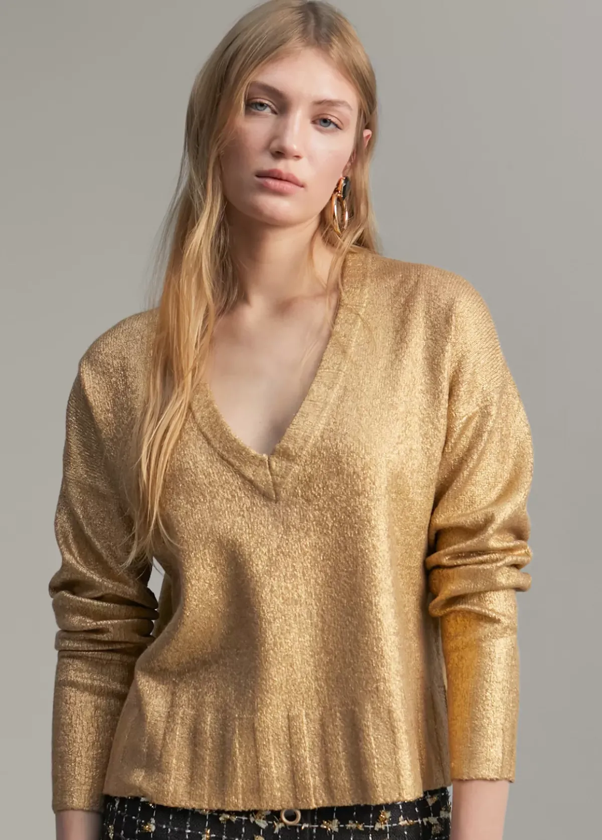 Jersey de punto laminado. Escote pico.