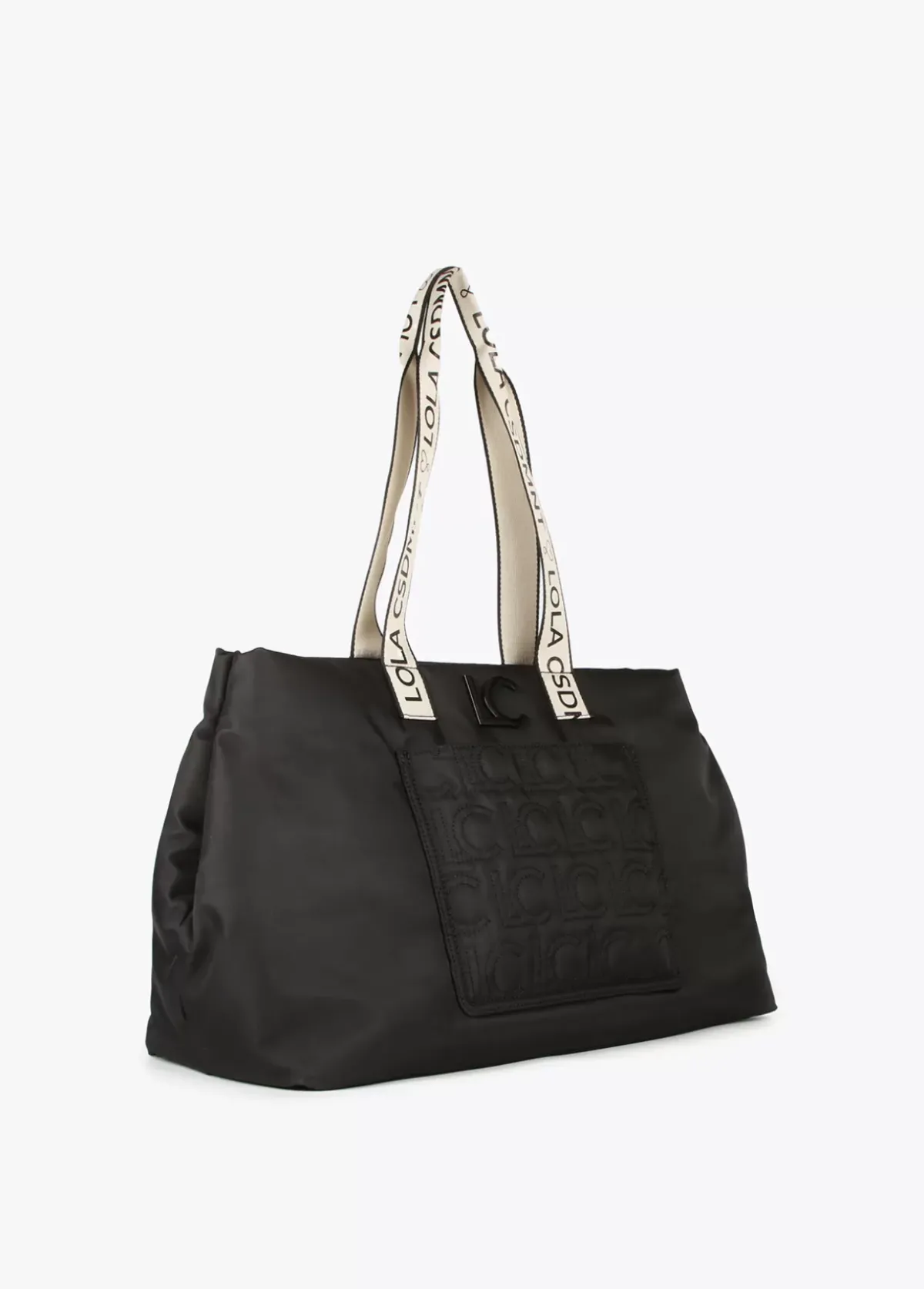 Weekend acolchado con monograma en relieve y asas logotipadas. Bolsillo trasero y cierre central con cremallera.