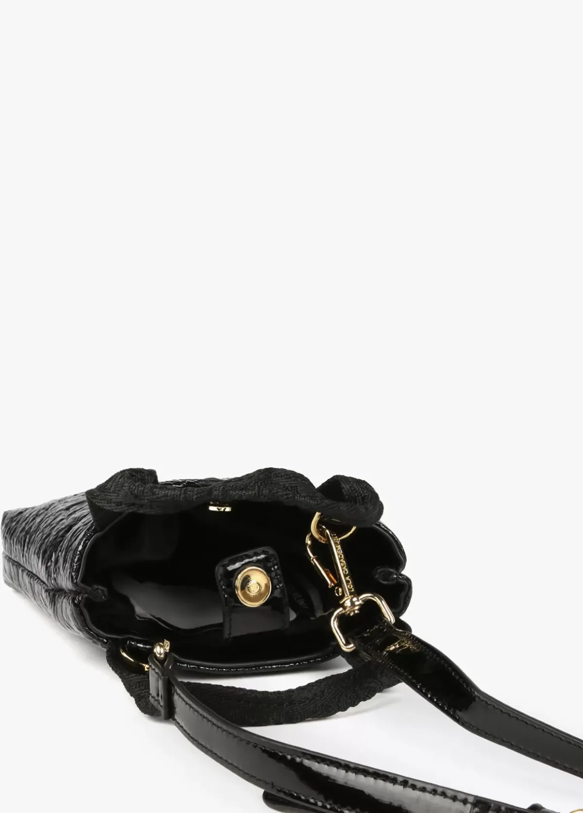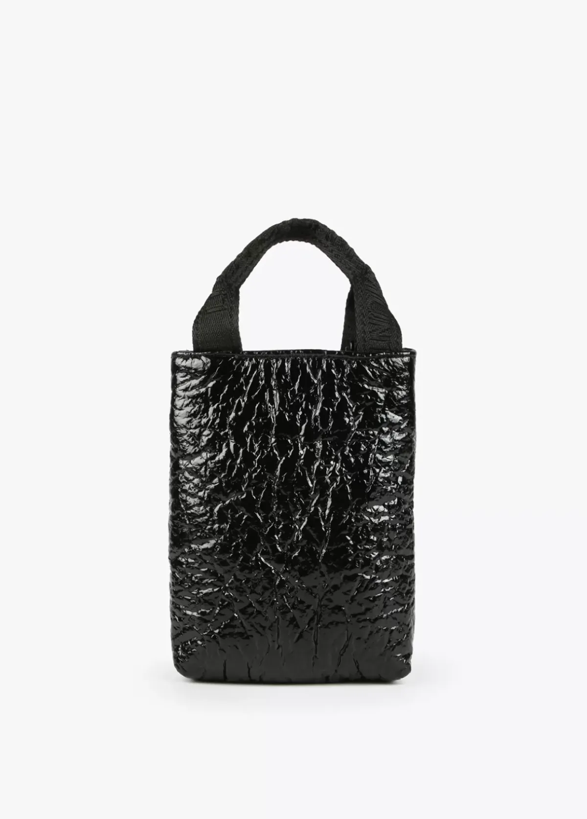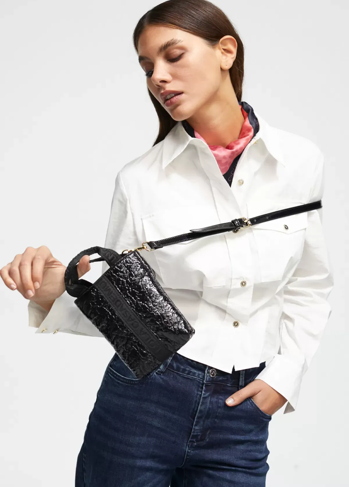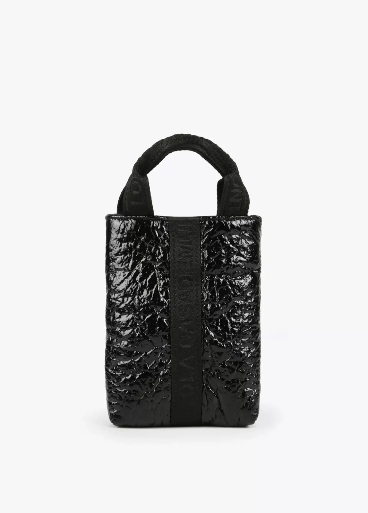 Bolsito porta móvil con asa de mano logotipada y asa bandolera extraíble y ajustable. Cierre con lengüeta y botón imantado.