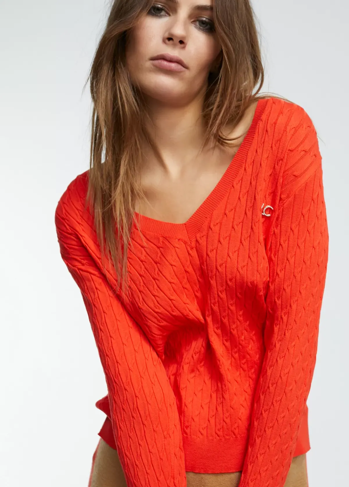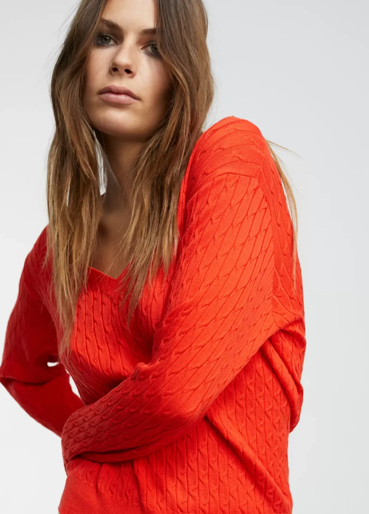 Jersey de cuello pico y manga larga en punto trenzado.