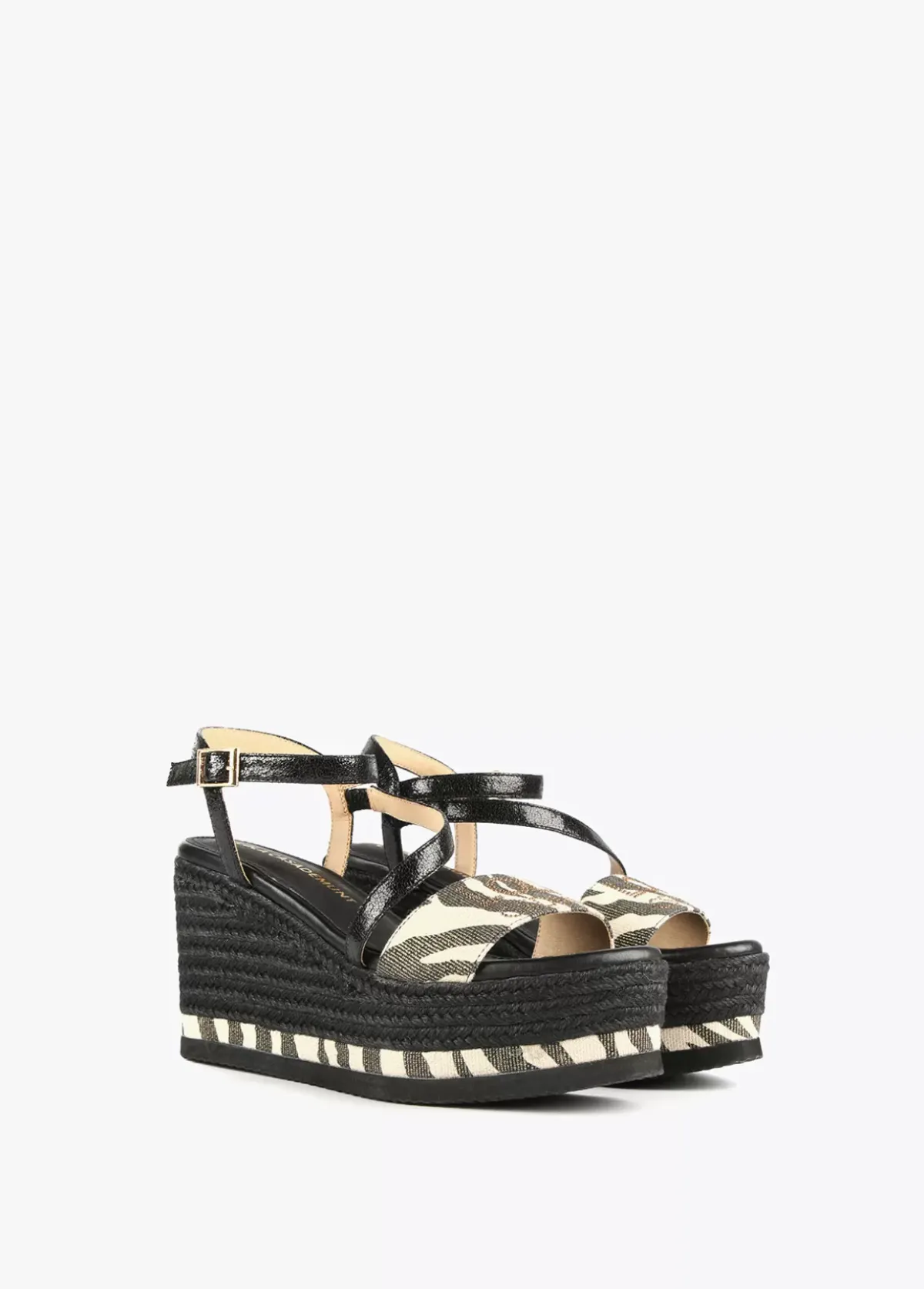 Clearance Sandalia cuña negra y animal print Calzado