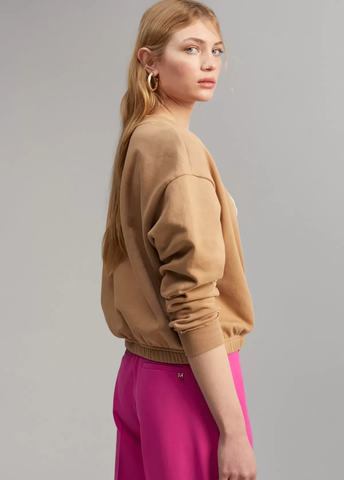 Sudadera en color camel con tigre bordado en parte frontal. Cuello caja y bajo elástico.