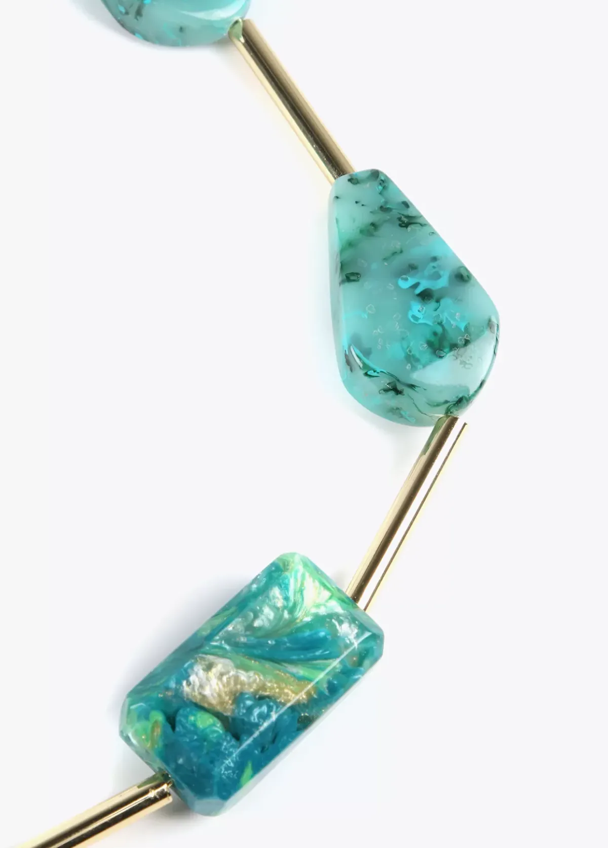 Collar doble con maxi piezas en color turquesa combinadas con detalles dorados. Cierre ajustable y medallita logotipada.
