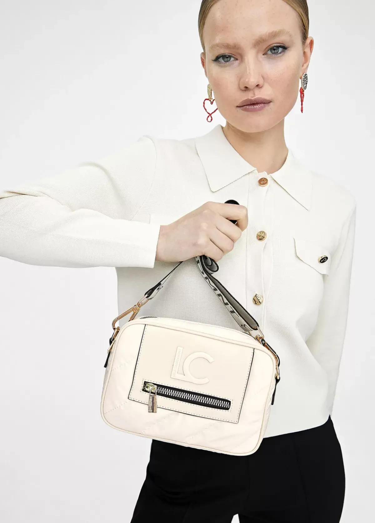 Bolso bandolera acolchado con efecto piel combinado. Bolsillo con cierre de cremallera y logo lacado en parte frontal. Asa bandolera logotipada, ajustable y extraible.