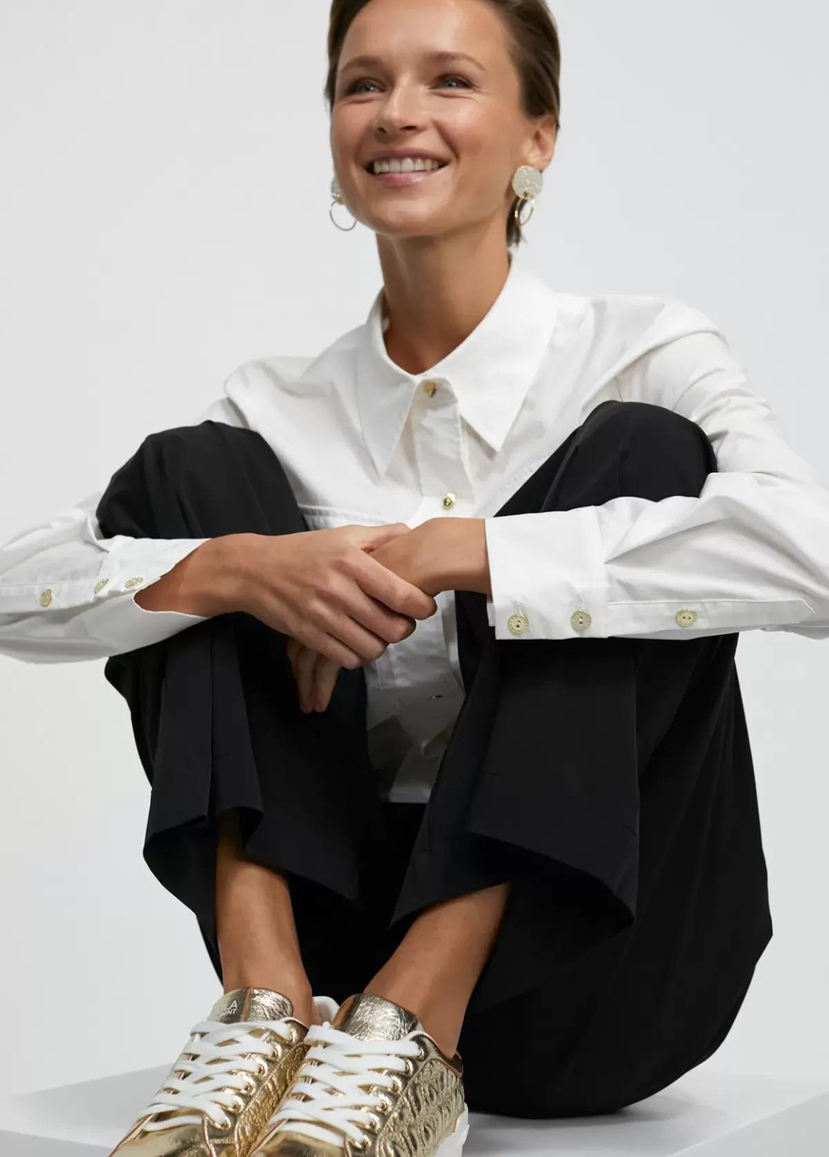 Zapatillas deportivas metalizadas con logro bordado en laterales. Lengüeta, parte trasera y plantillas logotipadas.