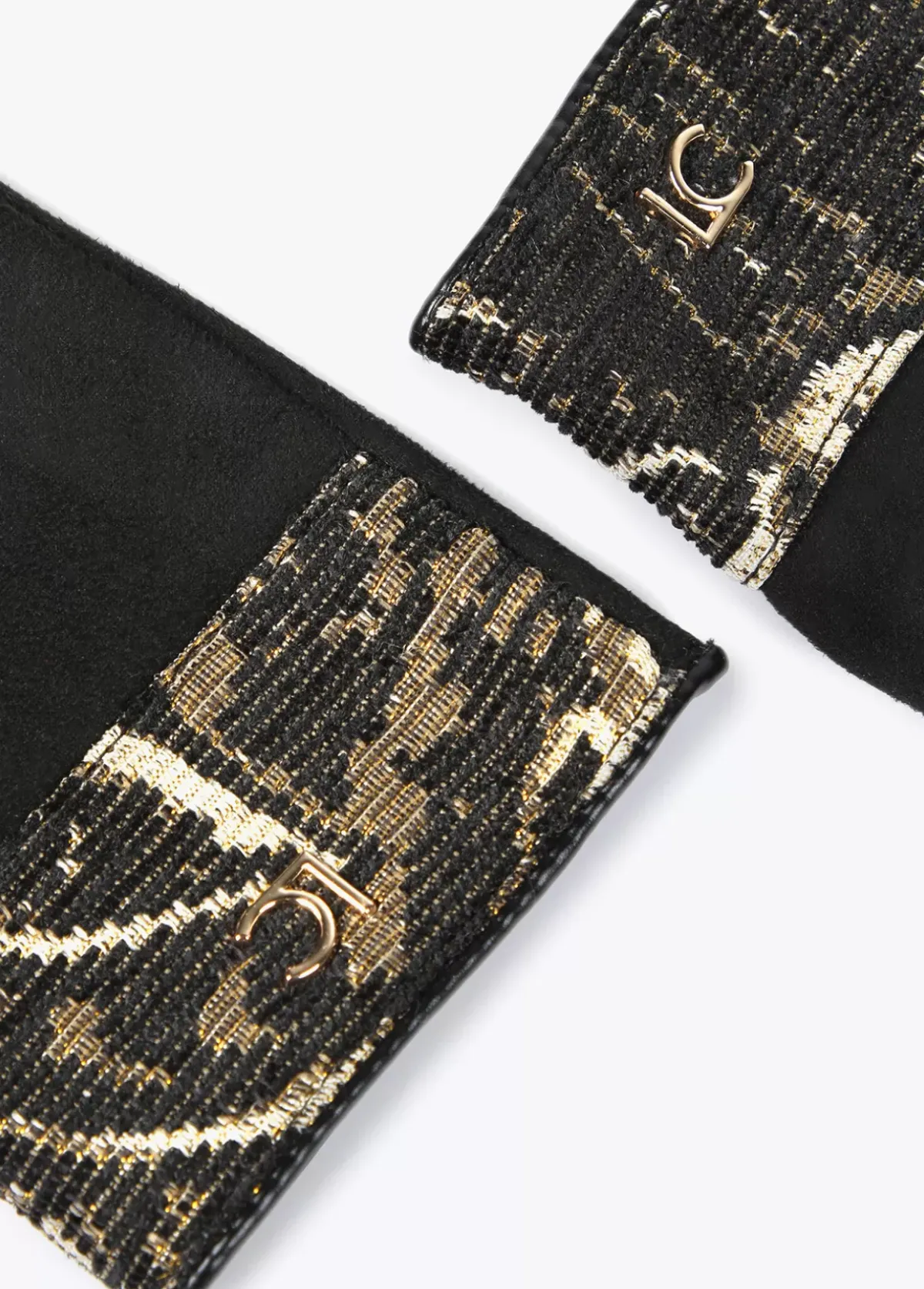 Guantes tejido jacquard y puños efecto pelo. Letra logo doradas en parte frontal.