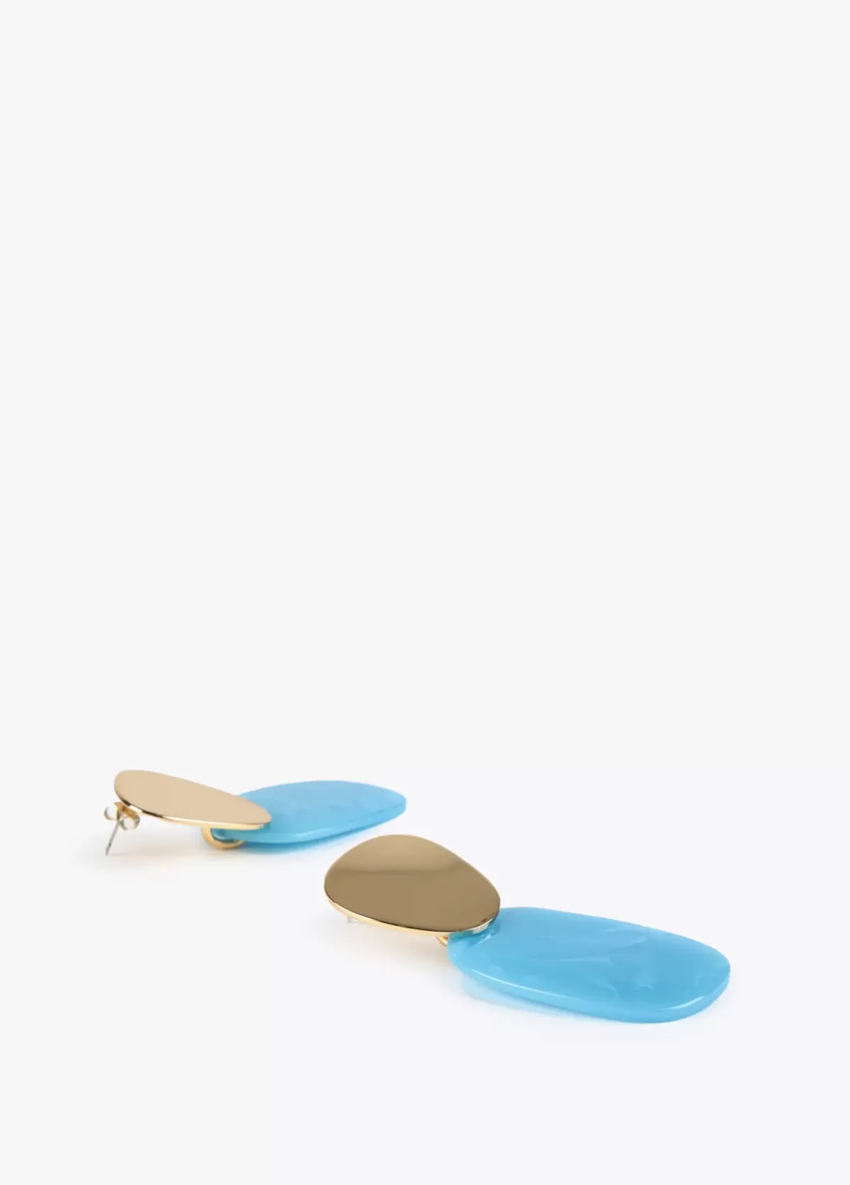 Pendientes con dos maxi piezas, en color y dorada. Grabado en parte interna.