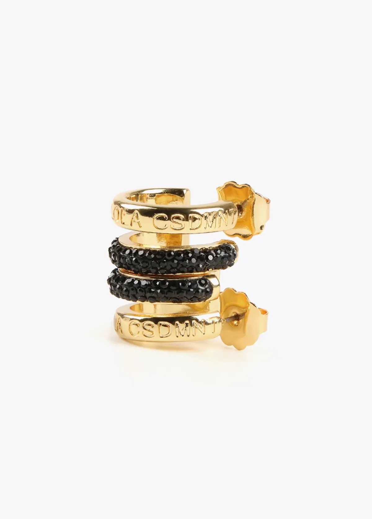 Pendientes dorados de aro doble logotipado y con piedras de color combinados.