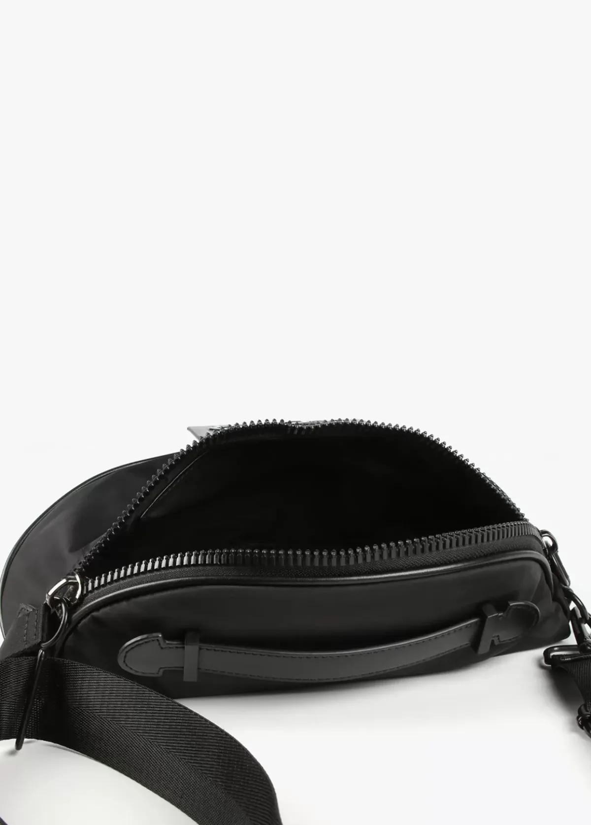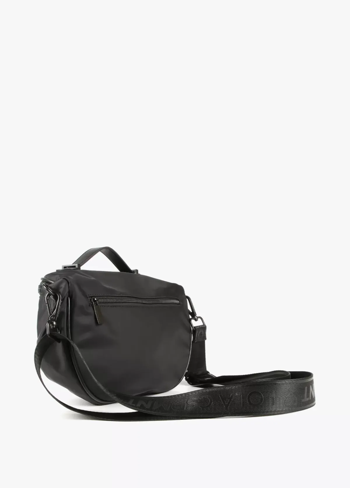 Riñonera de nylon con detalles en efecto piel. Logo en parte frontal. Asa bandolera ajustable y extraíble, bolsillo en parte trasera y cierre con cremallera.