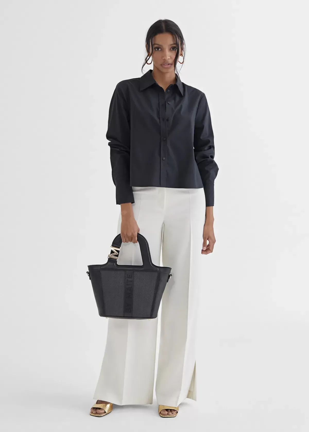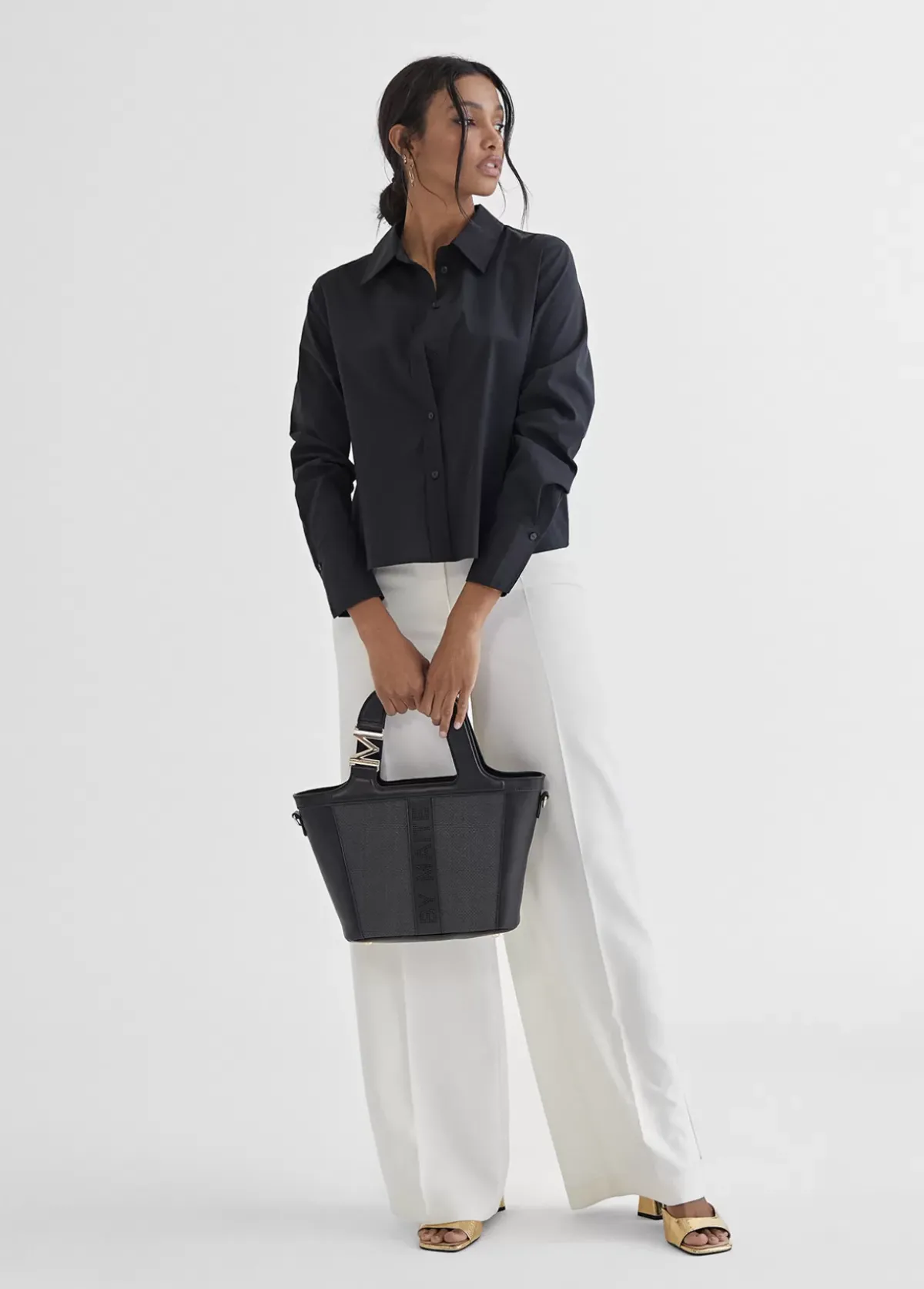 Camisa color negro con bordado fantasía en la espalda en tonos dorado y negro.