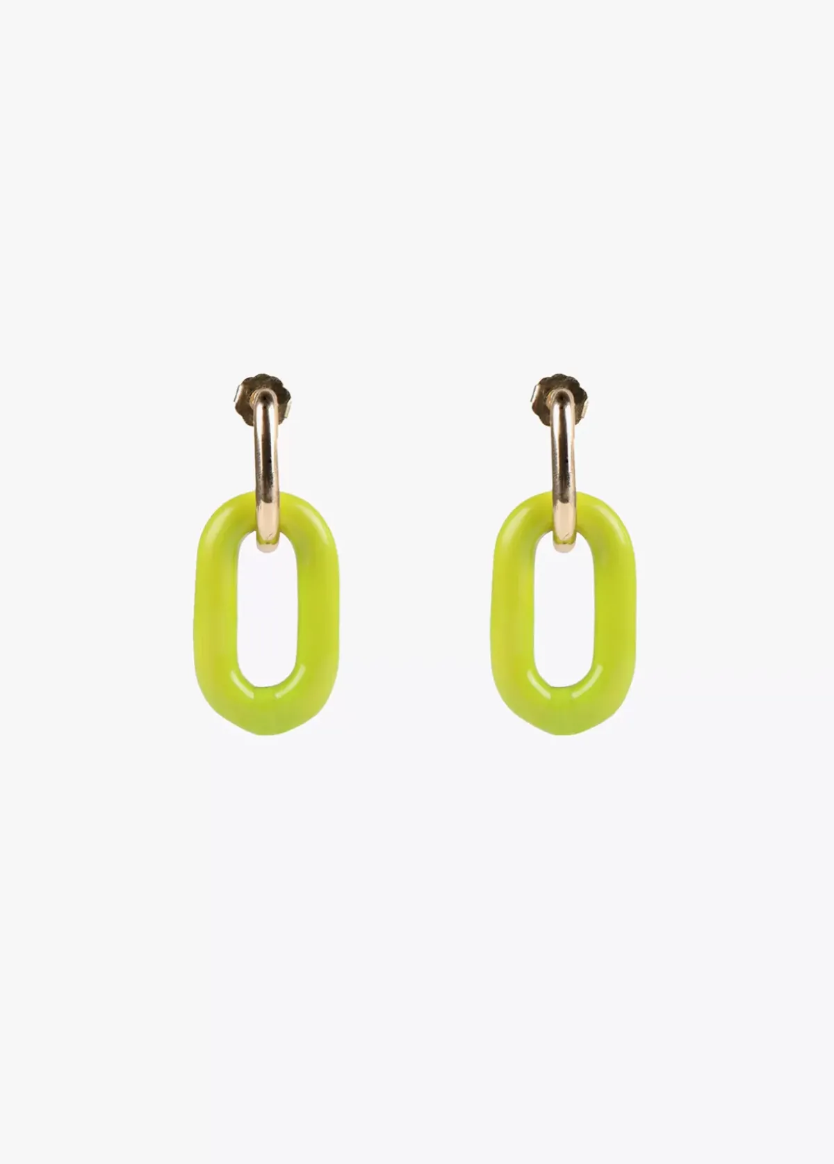 Pendientes dos piezas con maxi eslabon lacado y eslabon dorado abierto.