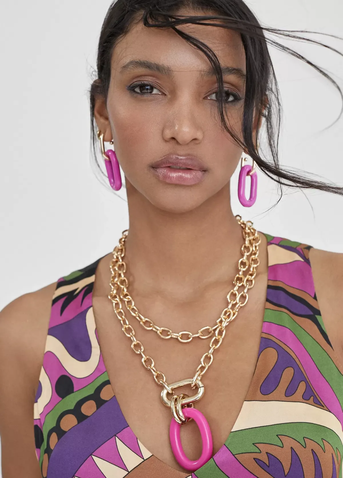 Collar dorado doble de eslabones con maxi eslabon lacado a modo colgante.