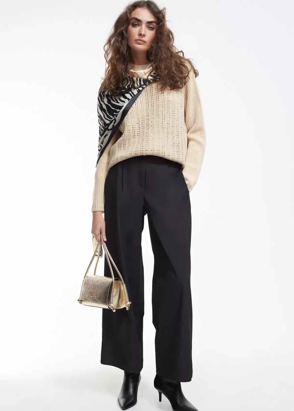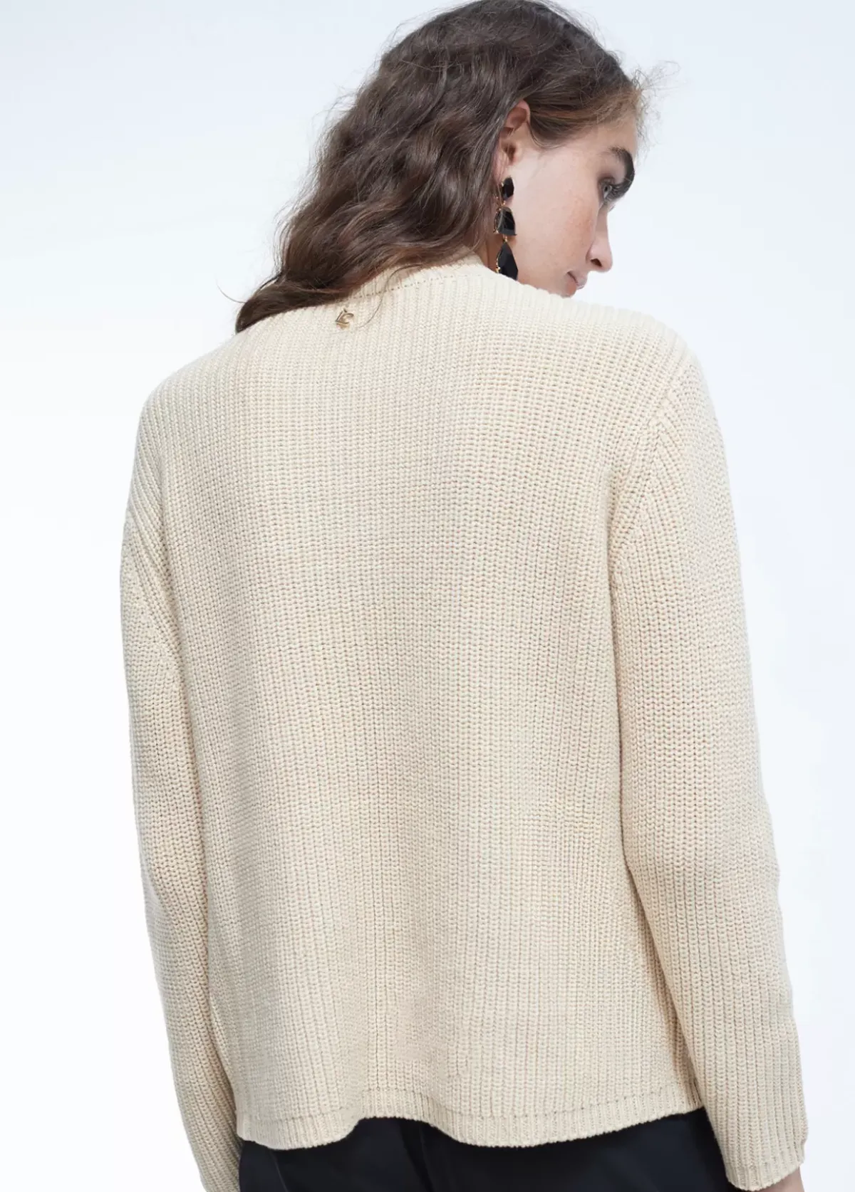Jersey de punto, cuello perkins. Detalle en frontal con strass a tono.