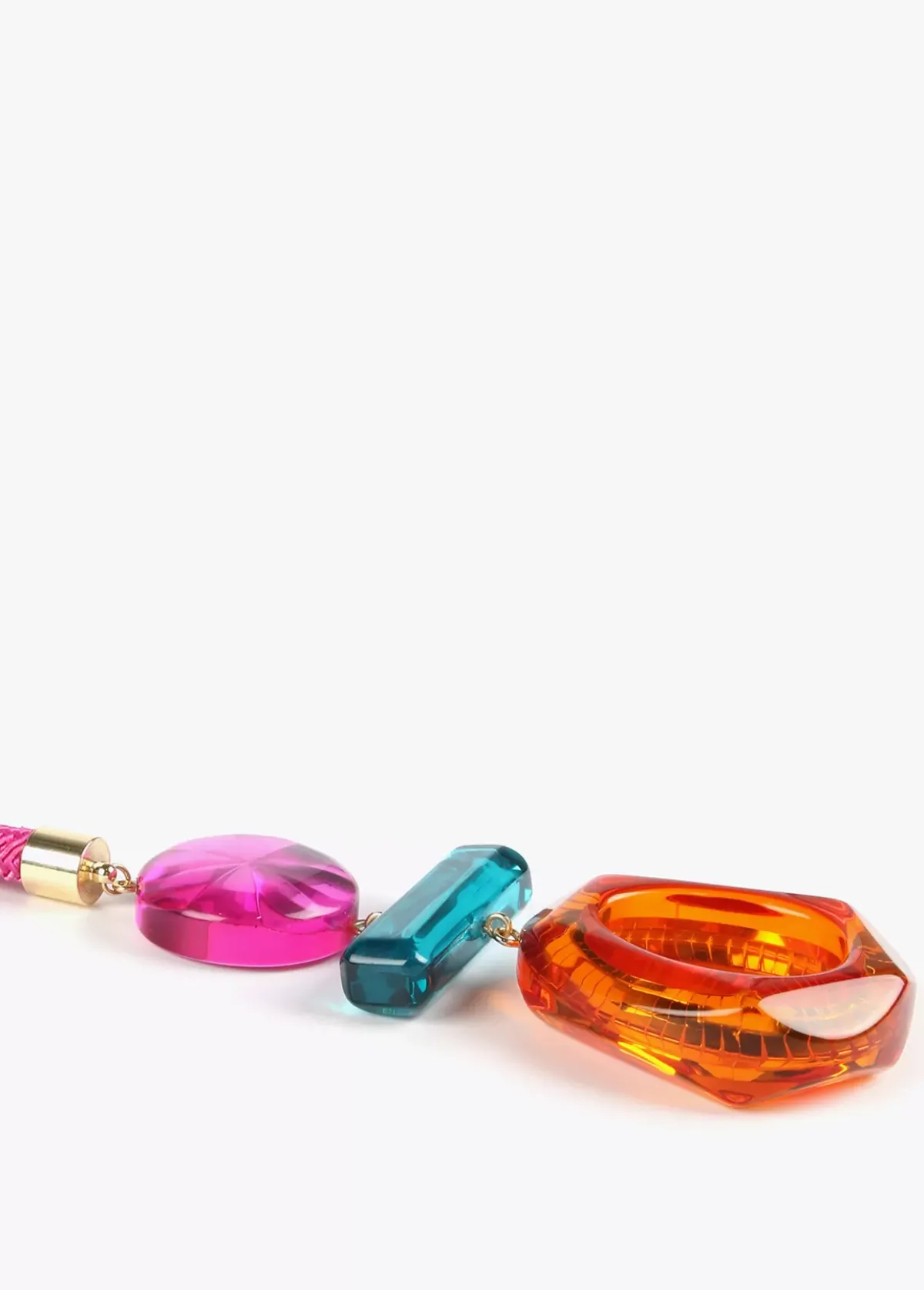 Collar largo con colgante de maxi piezas de diferentes colores. Cierre ajustable y medallita logotipada.