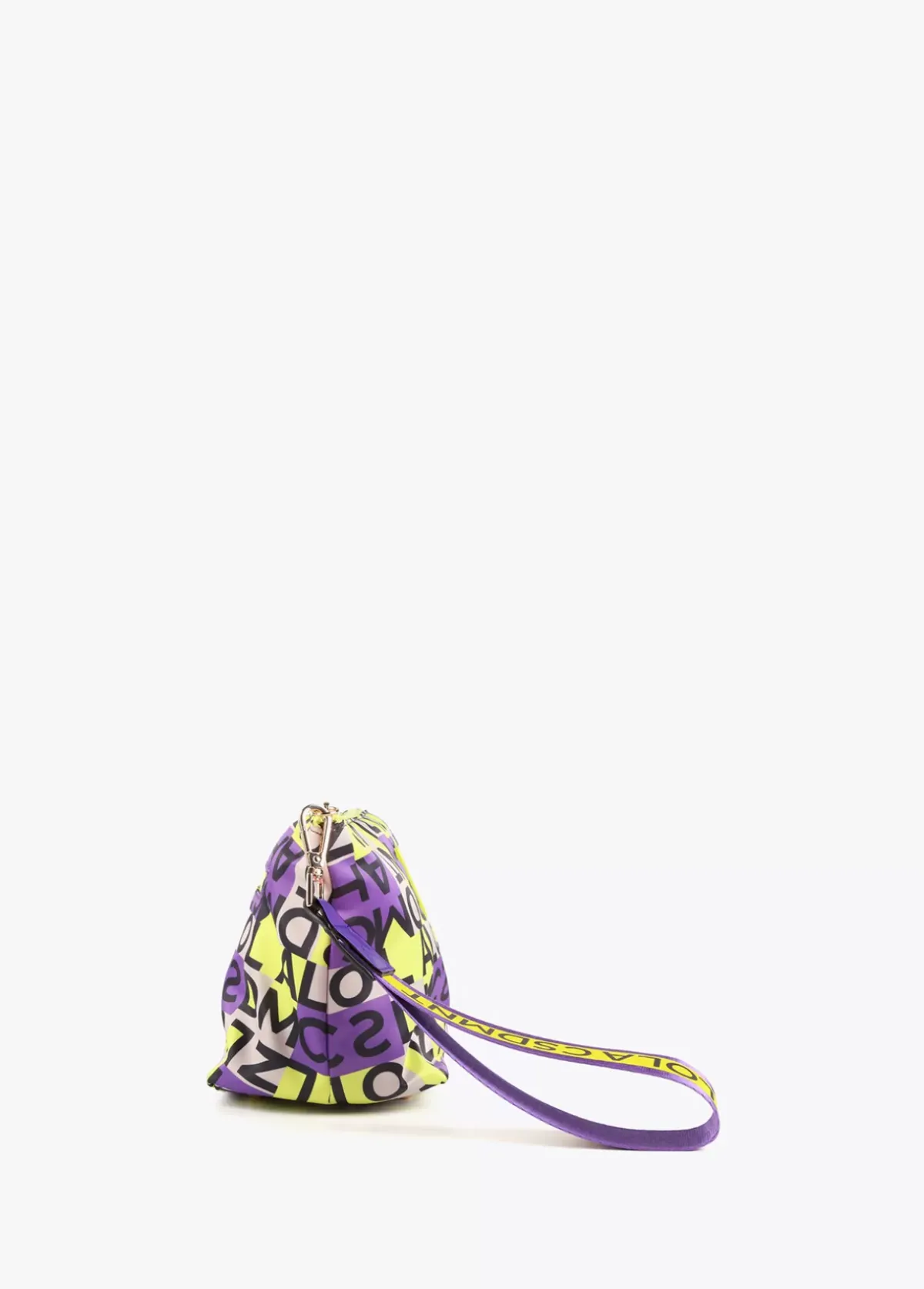 Neceser logotipado en tonos lila y amarillo. Logo lacado en parte frontal.