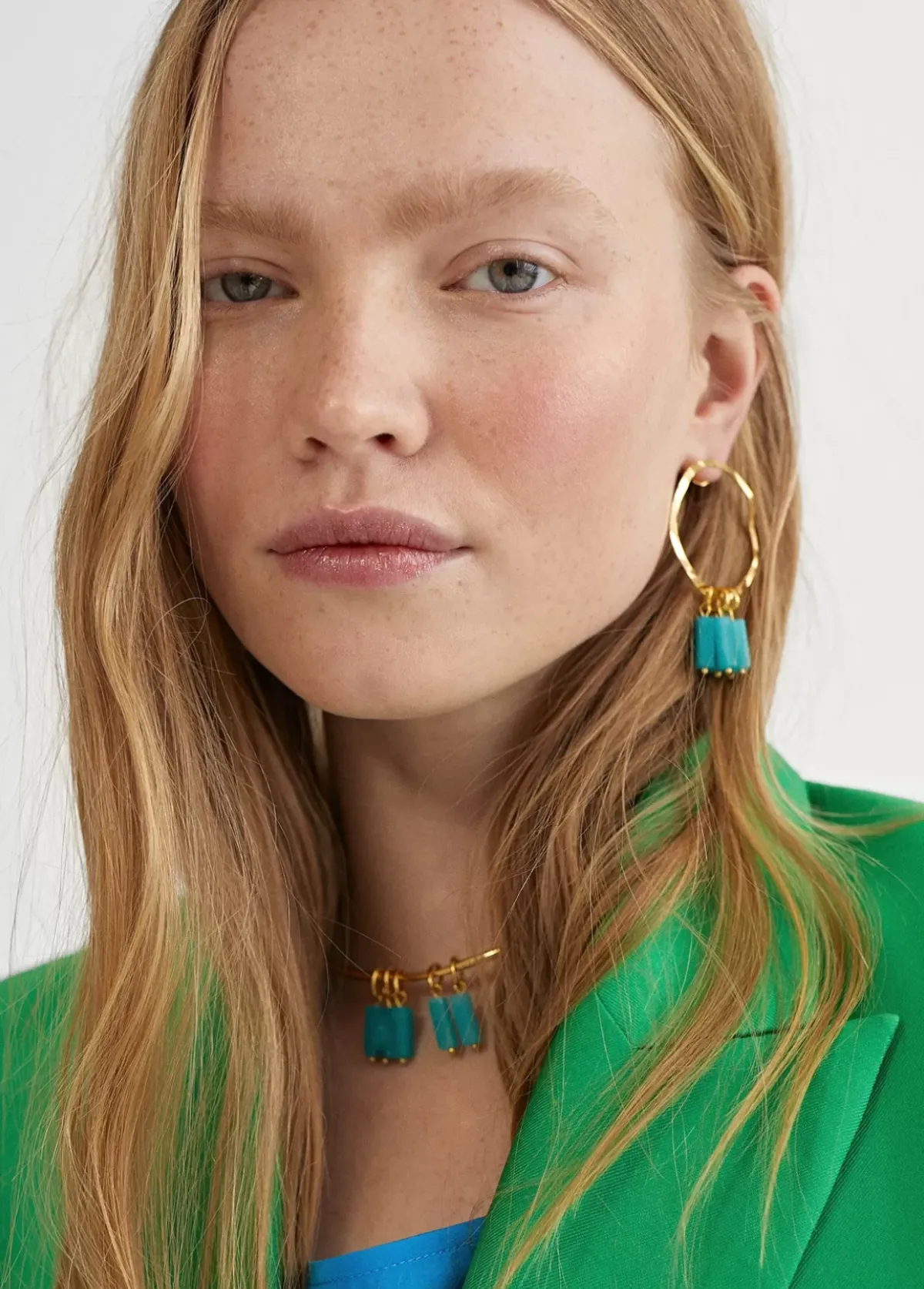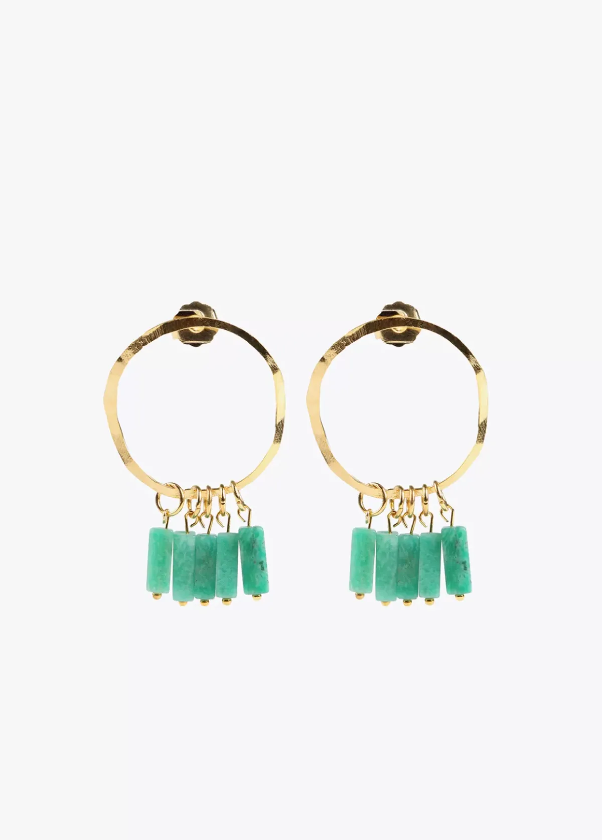 Pendientes de aro dorados con mini piedras colgantes color turquesa.