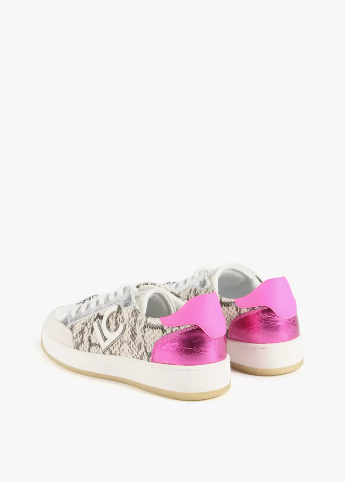Zapatillas deportivas tipo sneakers con animal print y detalles fucsia combinados. Lengüeta y plantilla logotipadas.